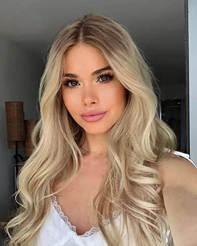Wigs for Women Best Synthetic Hair Wavy Wig with Flawless Hairline 60cm Heat Safe (Honey Blonde)