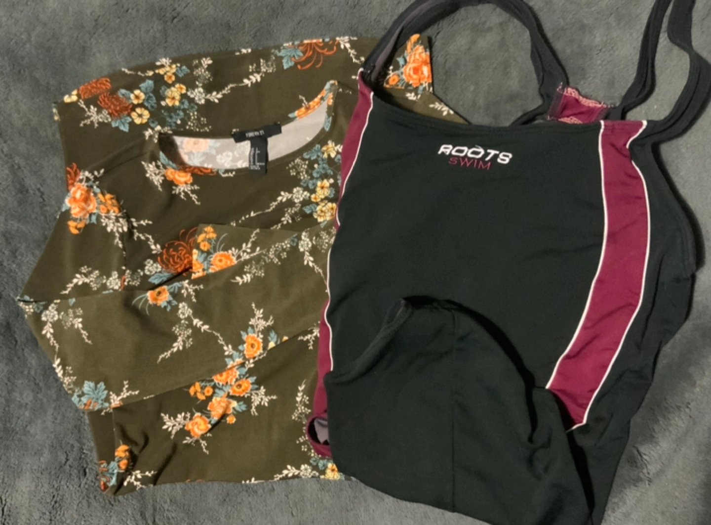 Bundle includes long sleeve shirts, pants, tights, tank tops, tube tops, hoodies, a long sleeve dress, a one piece swimsuit (elastic bands lost most of their stretch), socks, and undergarments.