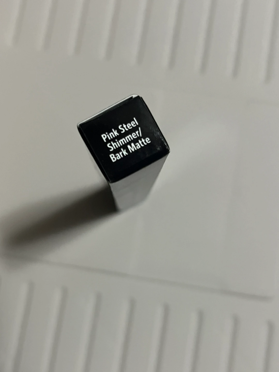 Dual-ended cream shadow stick. One end is Pink Steel Shimmer and the other is Bark Matte.
