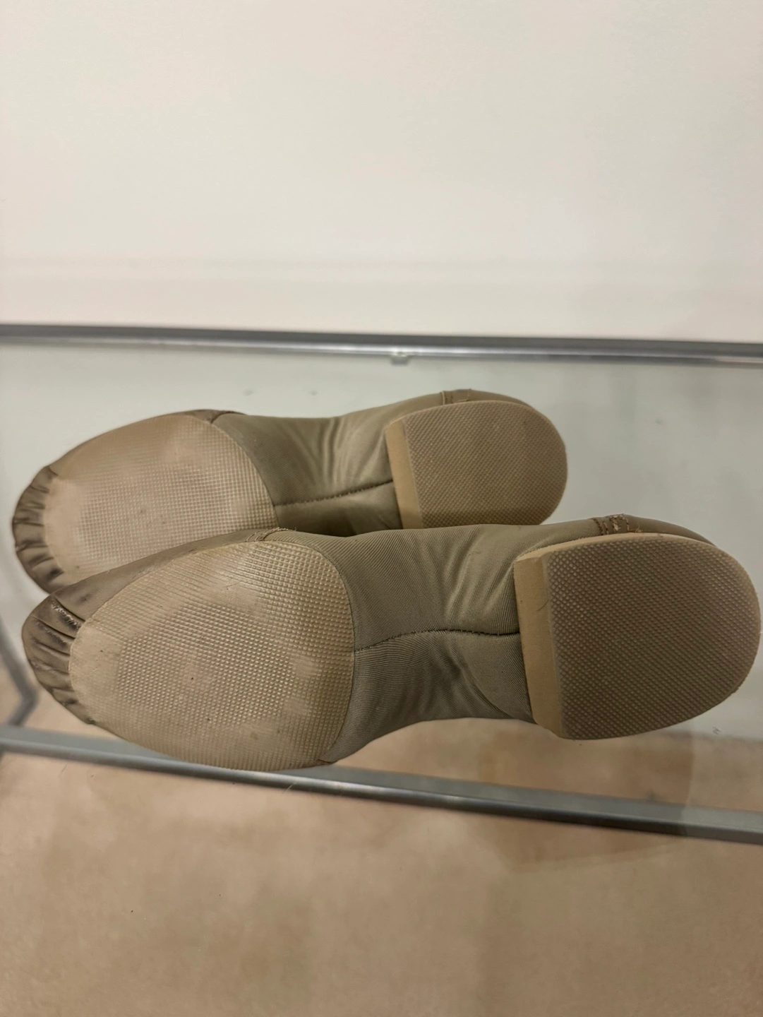 Tan leather dance shoes, worn but in good condition. Great for Jazz or Hip Hop.