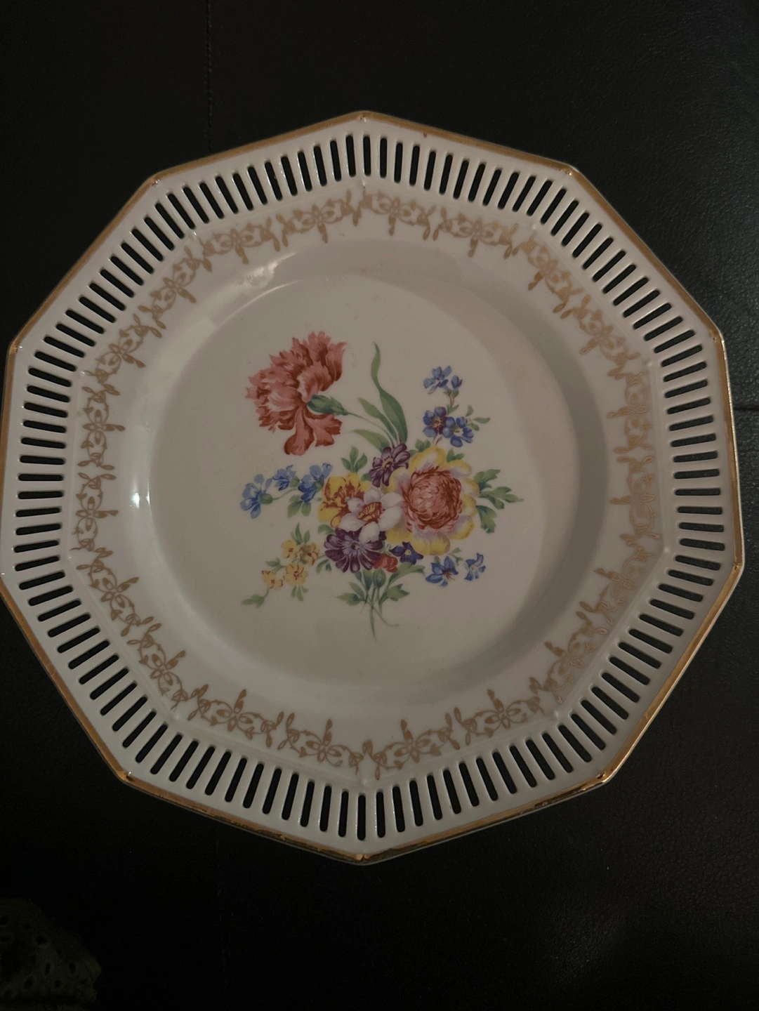 Vintage Schwarzenhammer Bavaria Reticulated Gold Trim Floral Victorian Porcelain Desserts Plate Made in Western Germany. Excellent condition