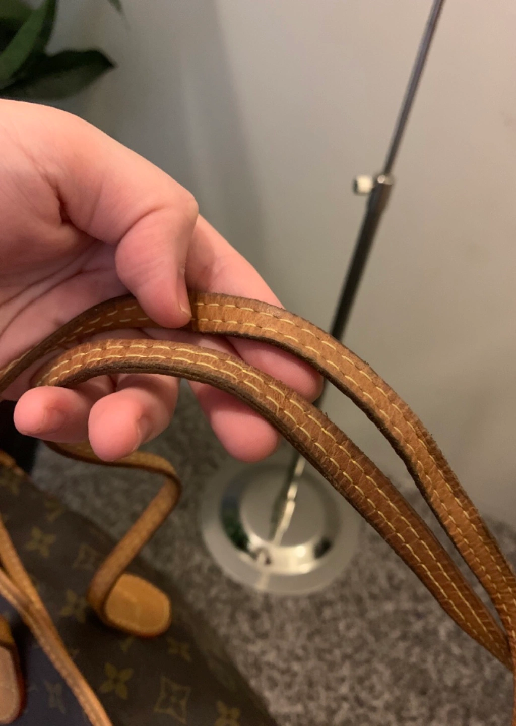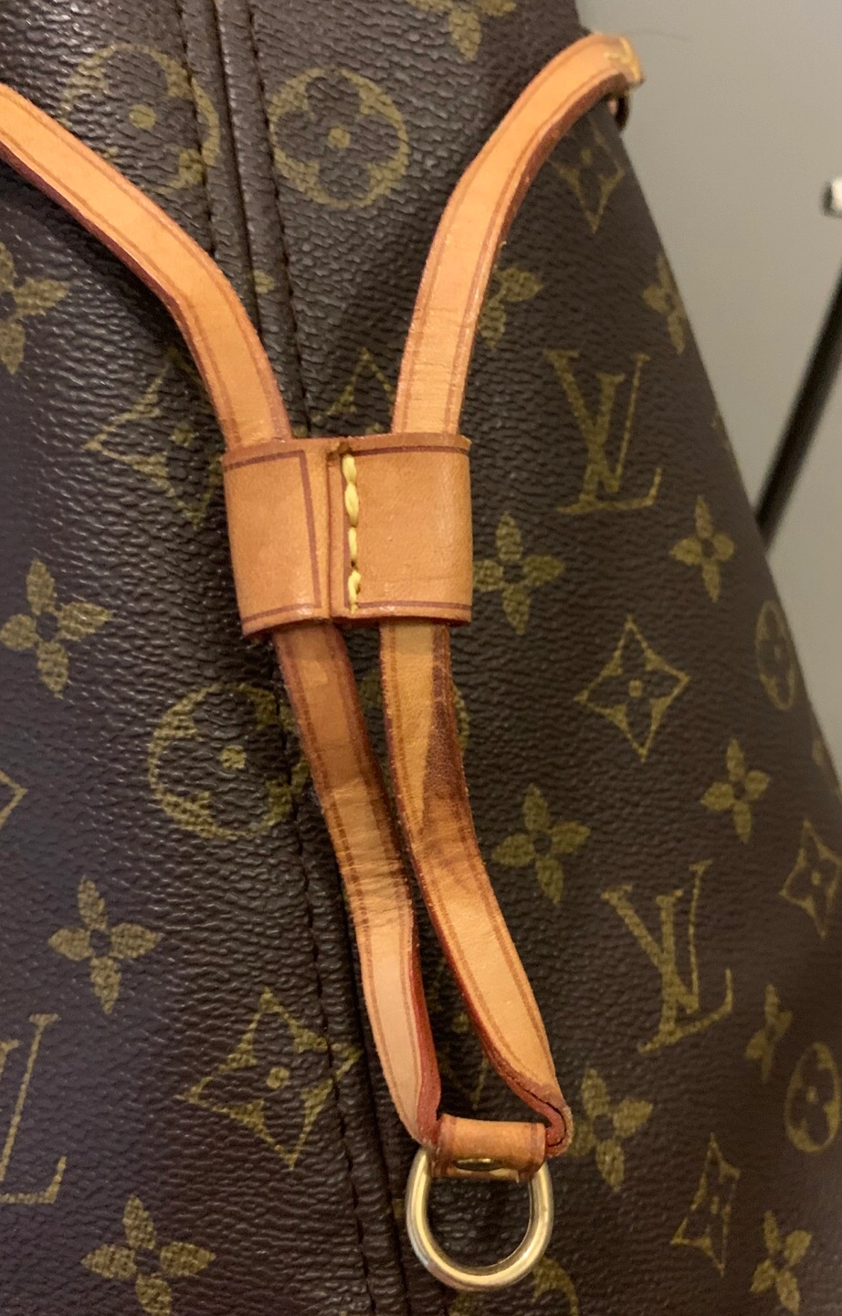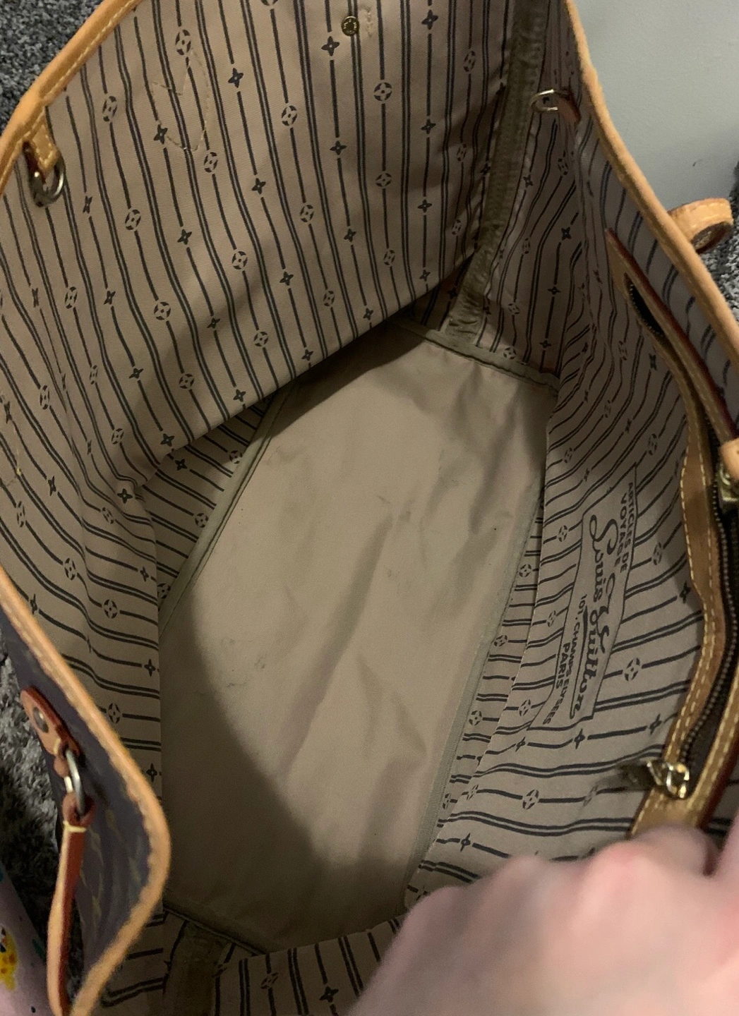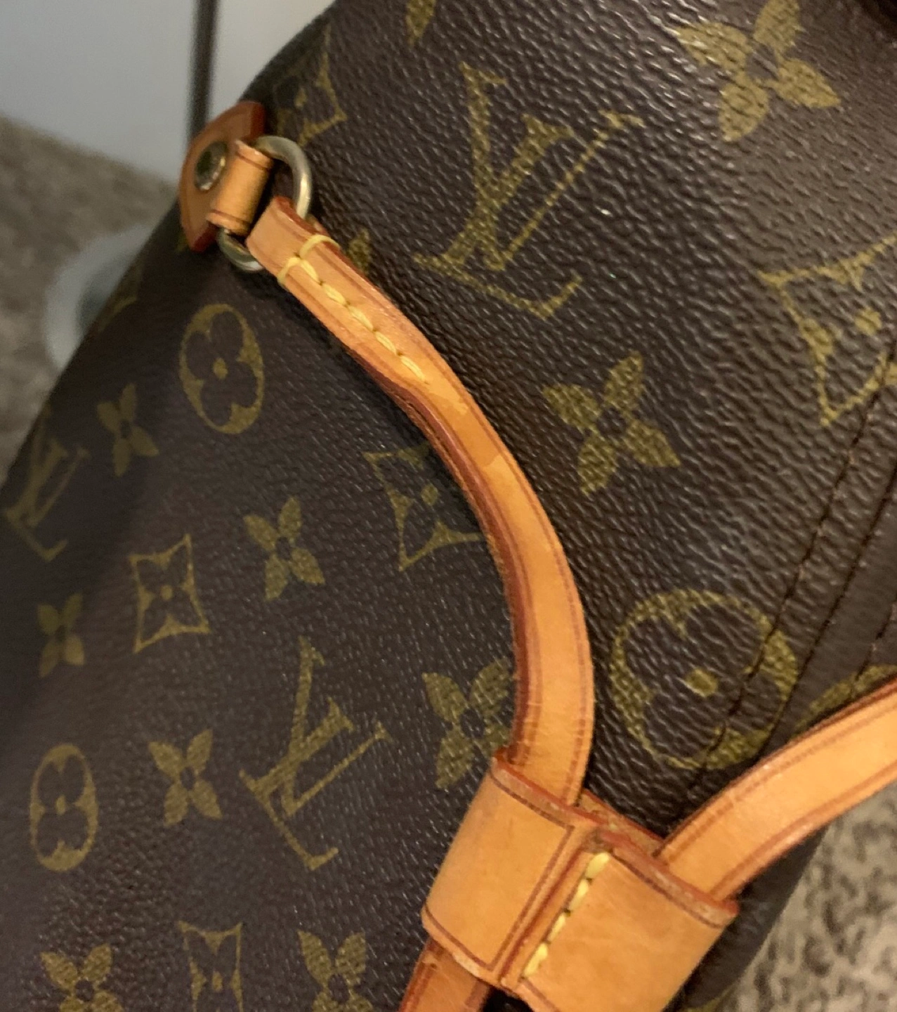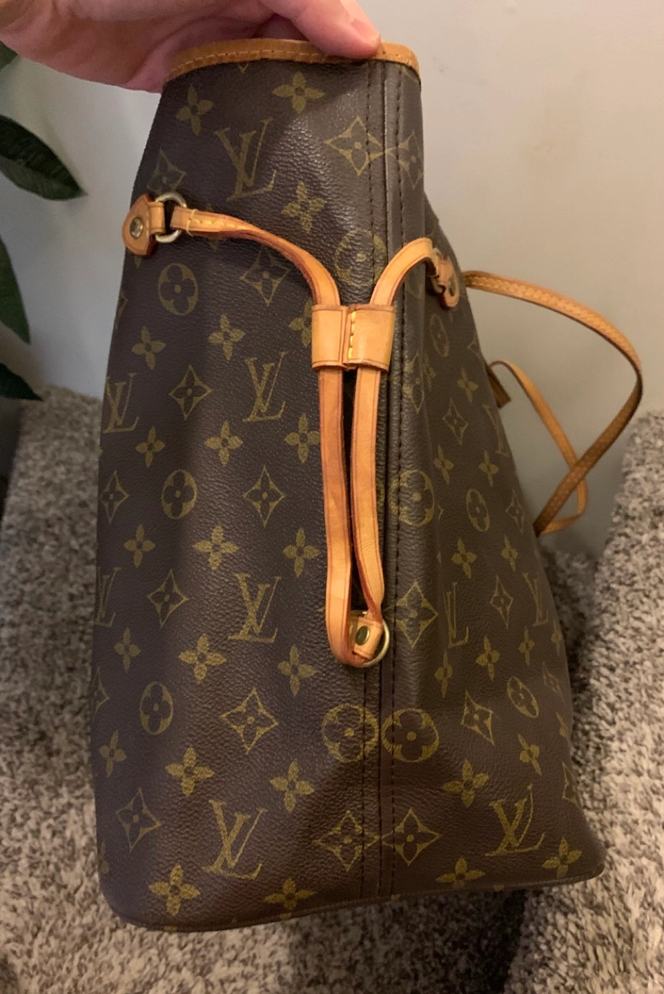 The largest size A few marks on inside lining Outside is clean and intact The inside hook closure is loose but doesn’t affect the purse Does not come with a pouchette Tons of space if you want to use overnight or as a diaper bag