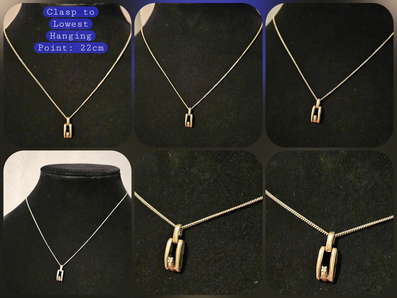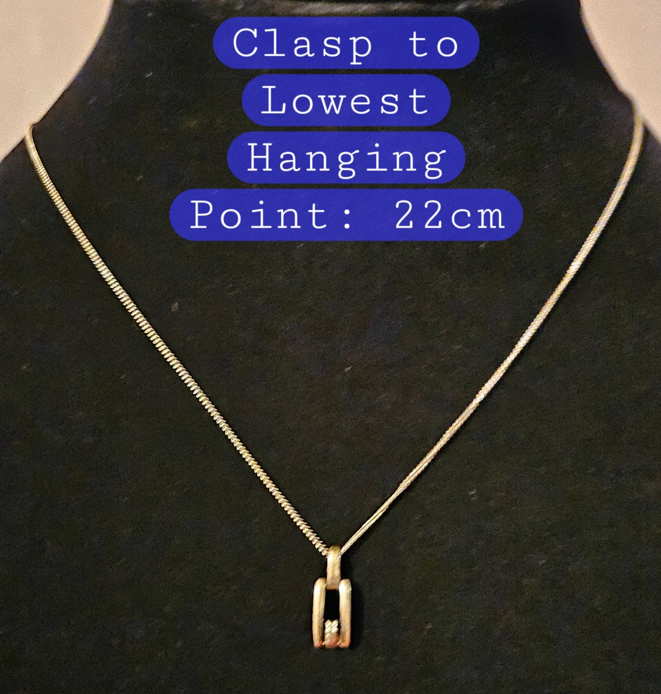 Clasp to Lowest Hanging Point: 22 cm