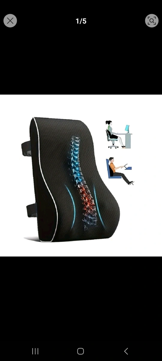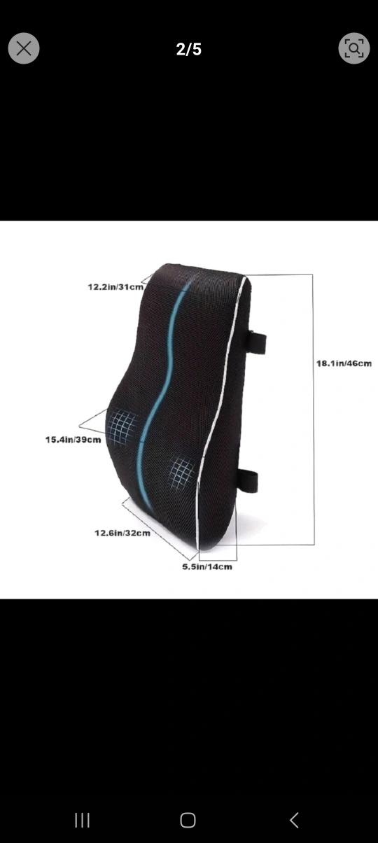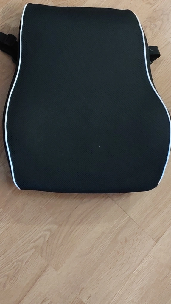 Black back support cushion with adjustable straps. Breathable mesh fabric. In very good condition.