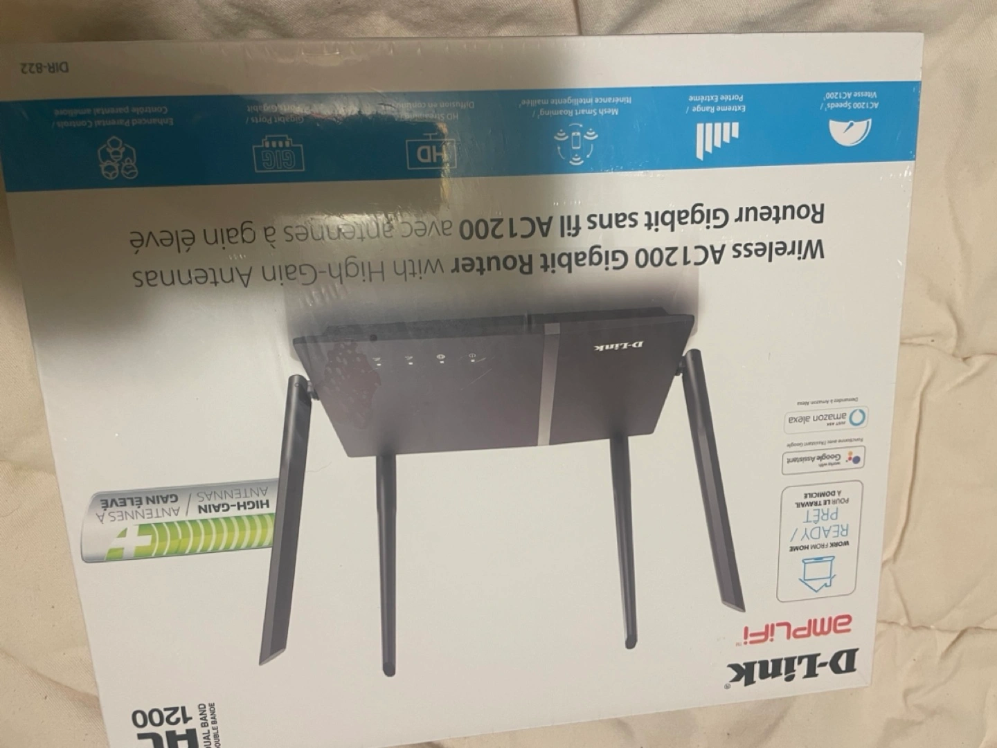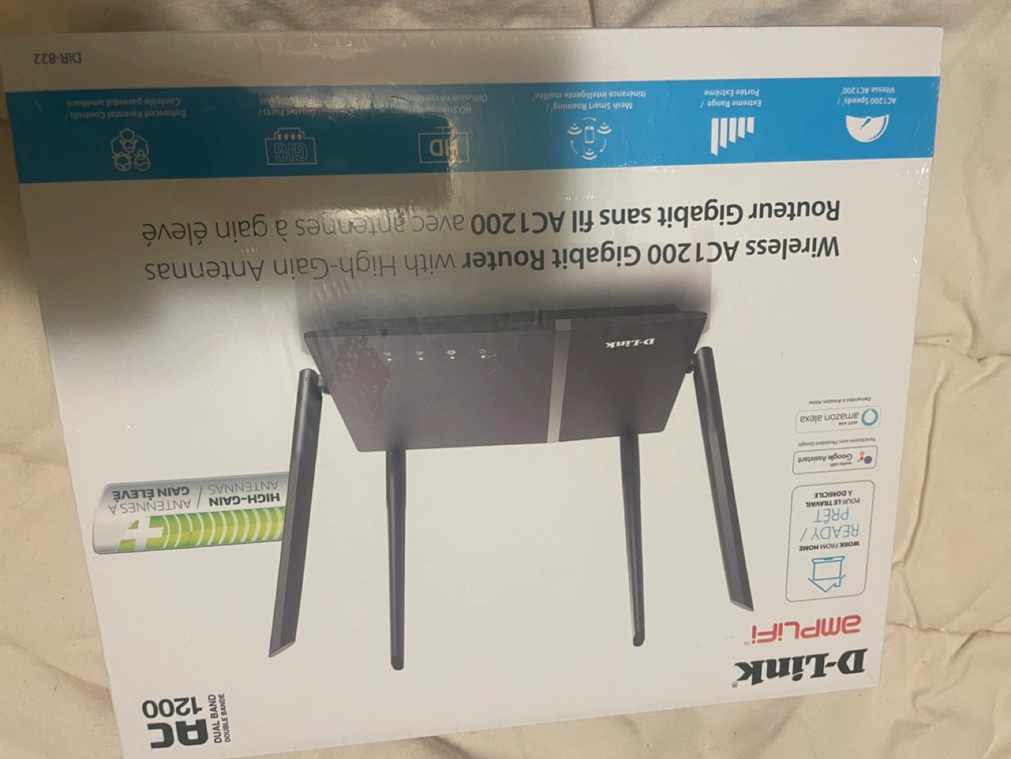 137Wireless router with high-gain antennas, 4 antennas, 1200 AC Gigabit, fits sans gigabyte, voice control, Google Assistant compatible, easy setup.