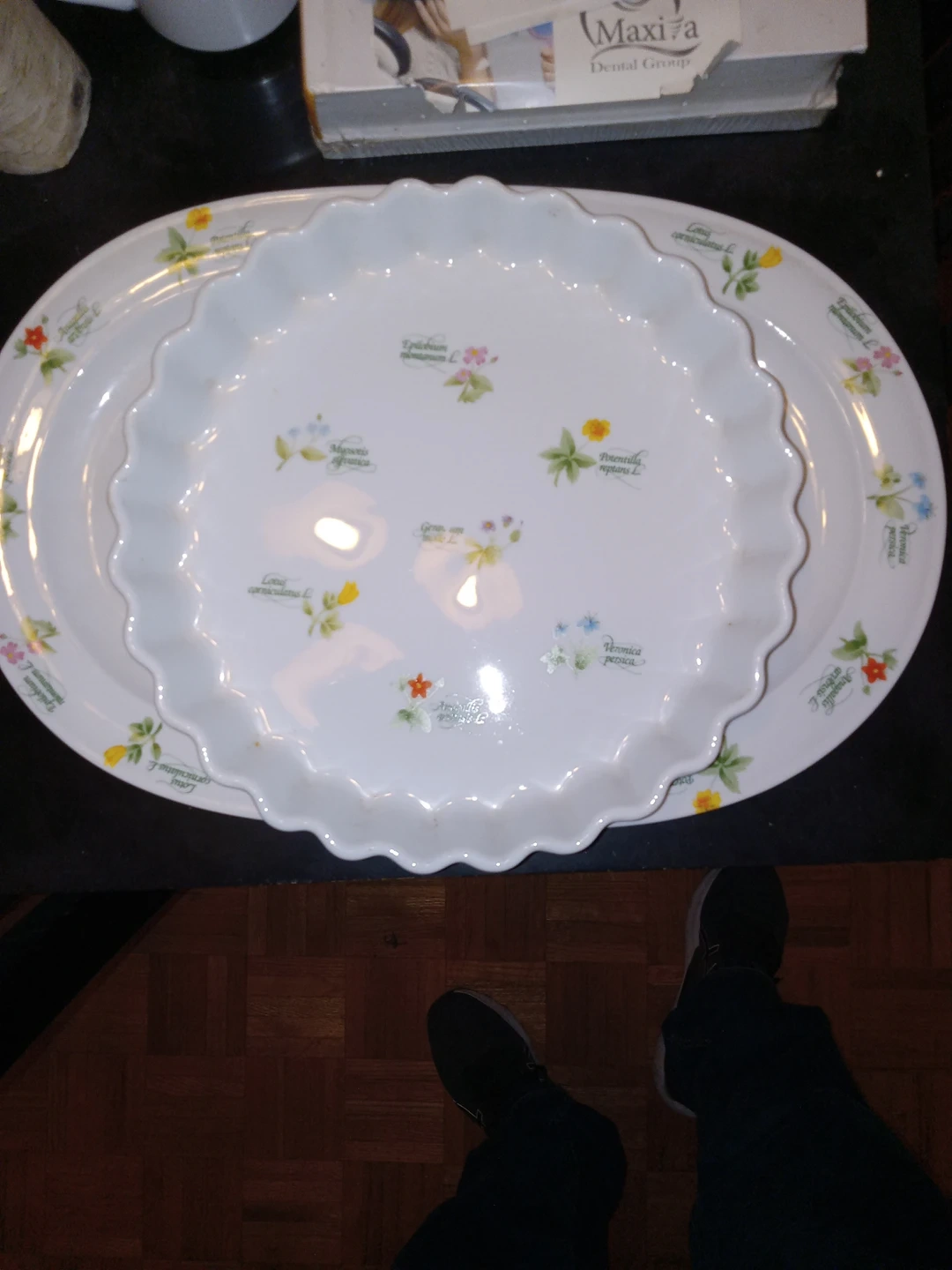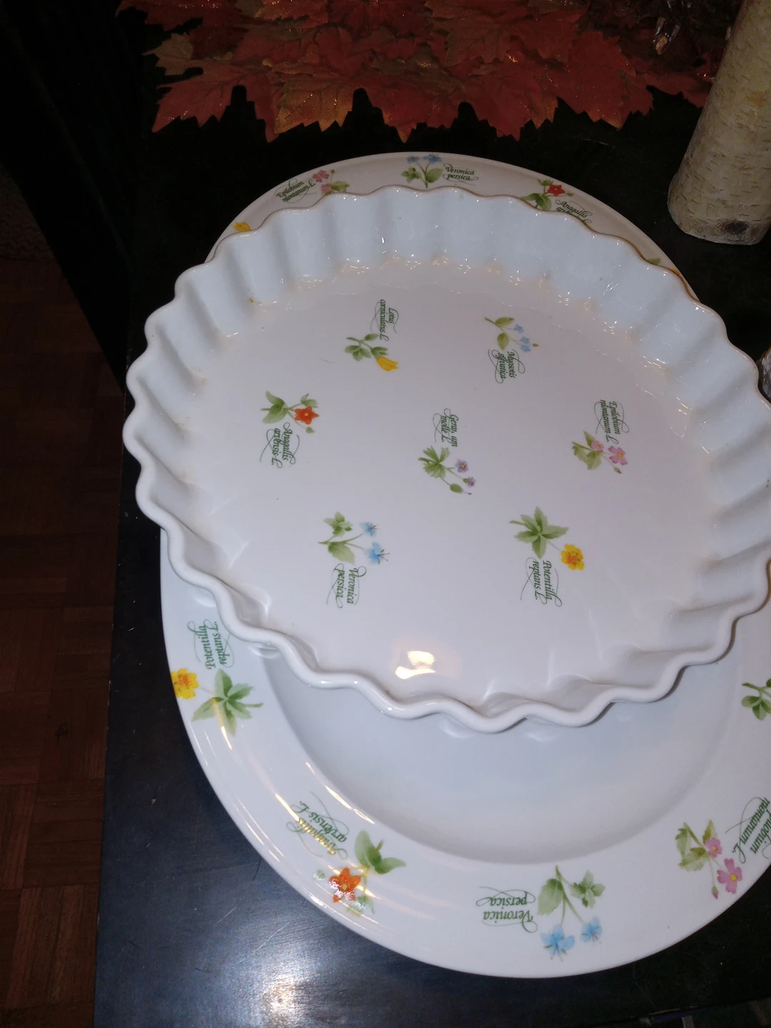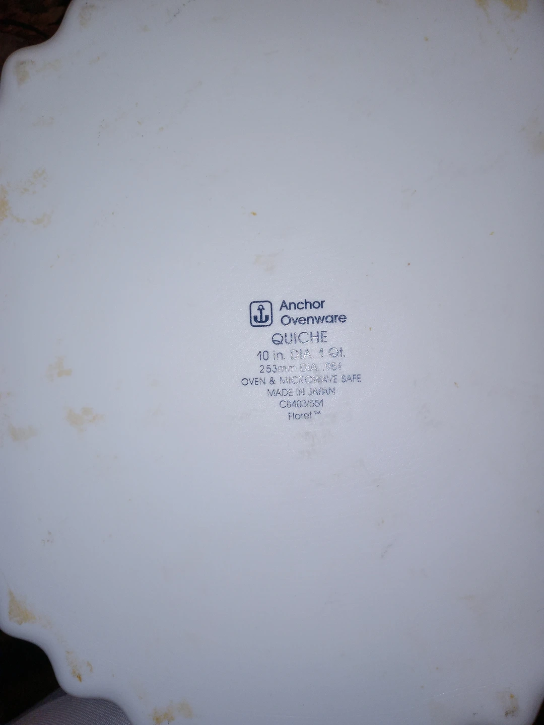 I am selling a Quiche and Serving Platter made by Anchor Ovenware. They have a nice floral design/pattern and are safe to use in the oven.
