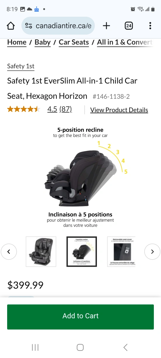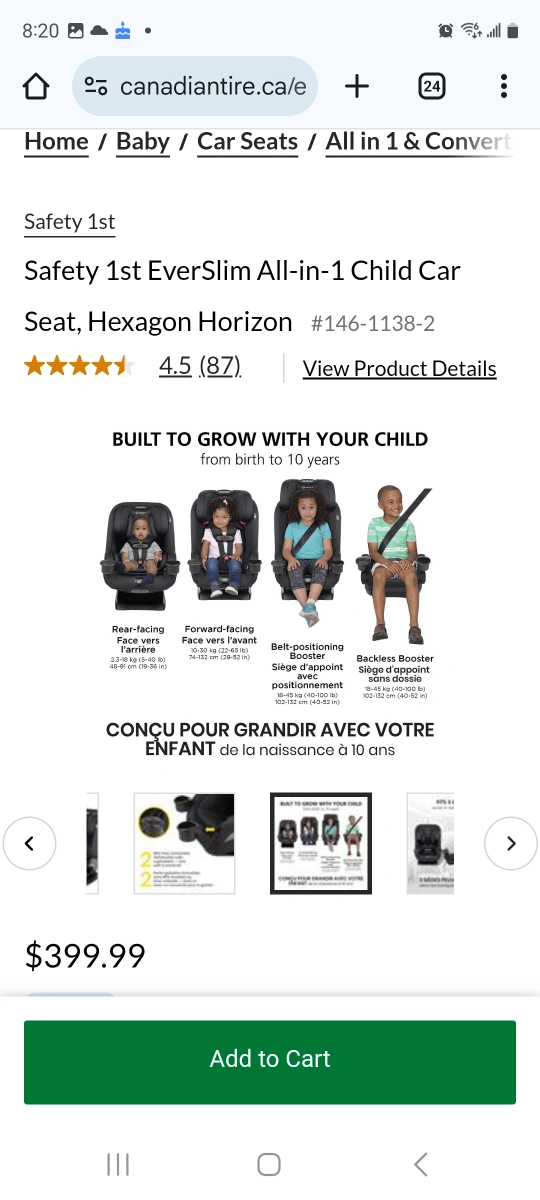 BNIB Safety 1st EverSlim 4-in-1 Convertible All-in-One Car Seat