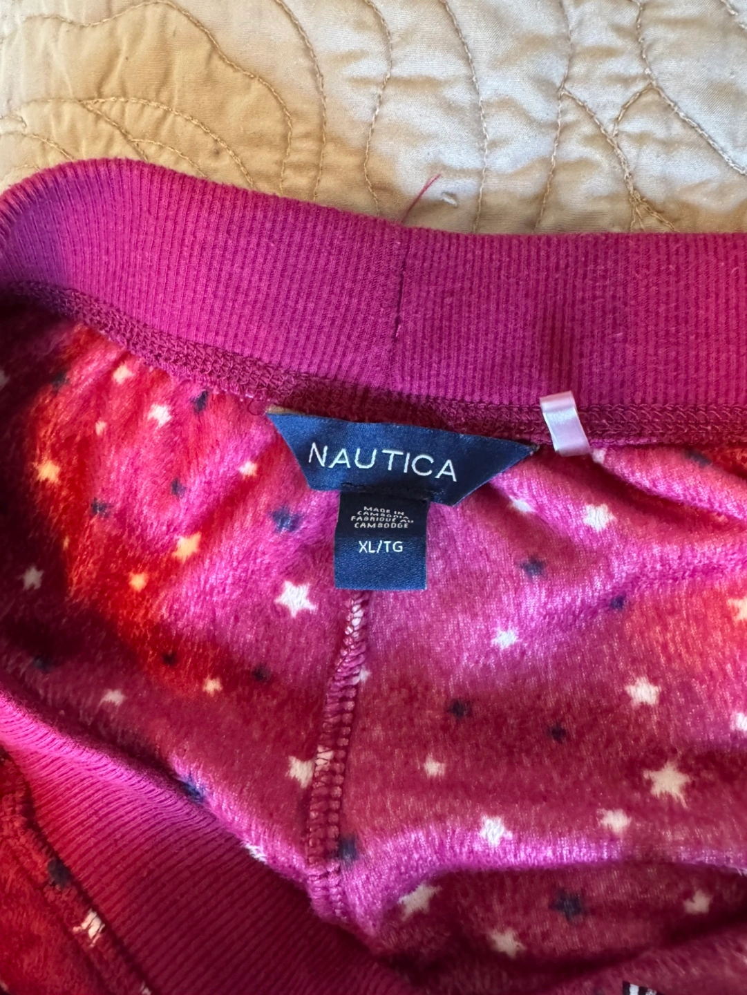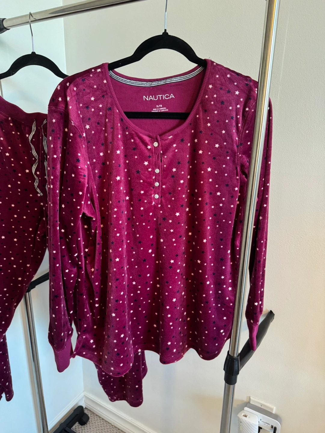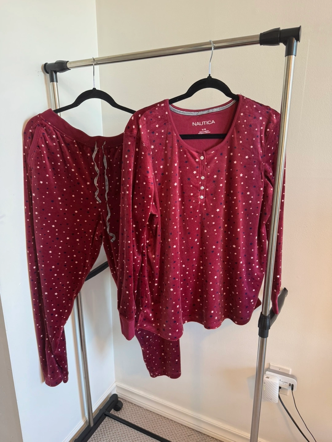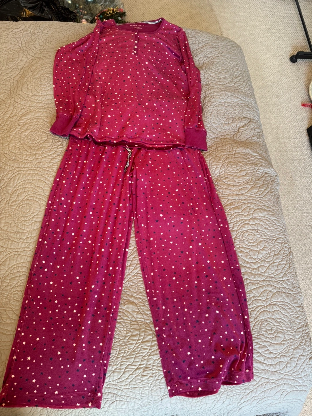60Red pajama set with stars, long sleeves, and pants. Size XL/TG.