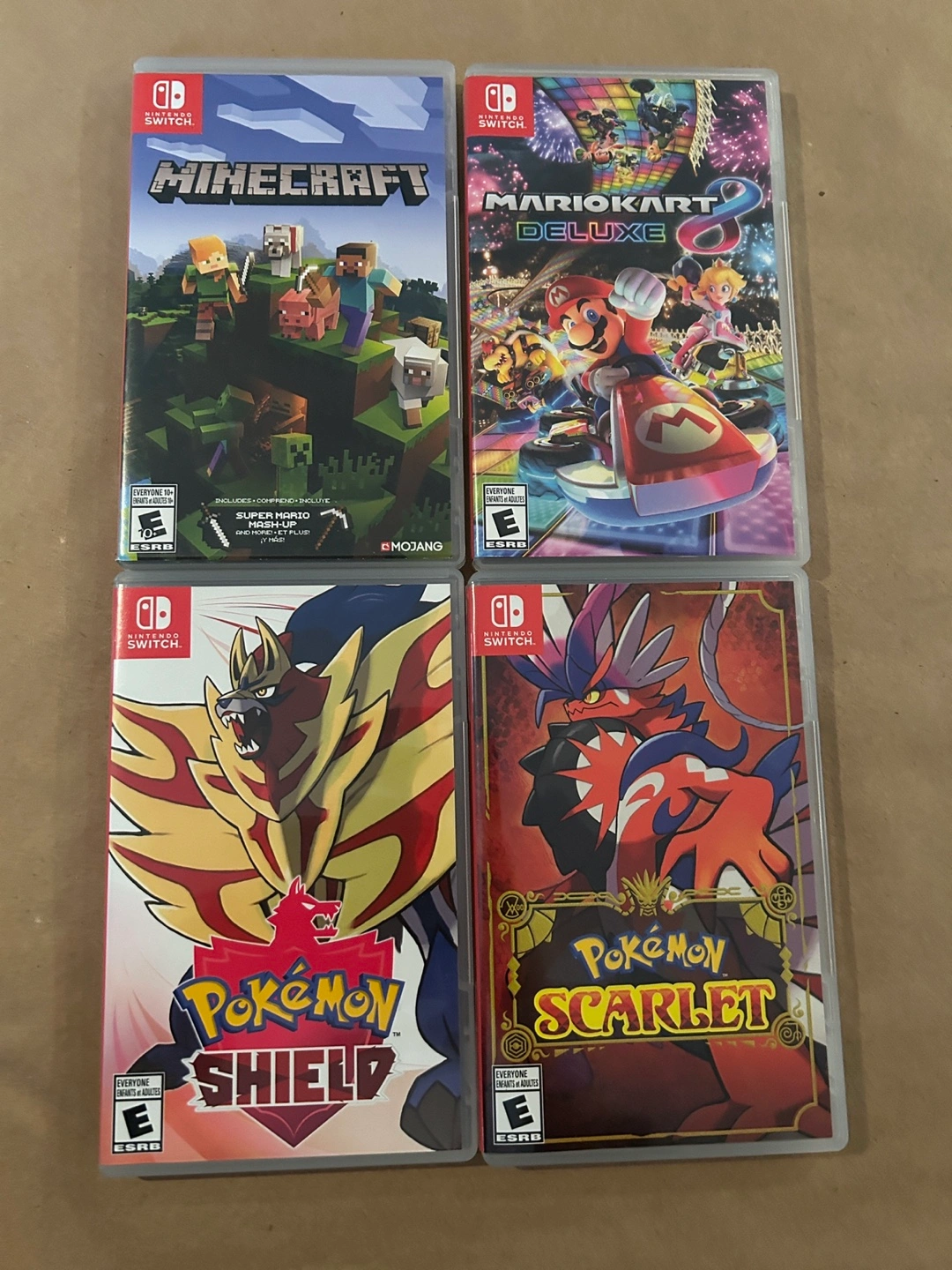 6) Games included: Mario Kart 8 Deluxe, Pokémon Shield and Pokémon Scarlet, Minecraft.
