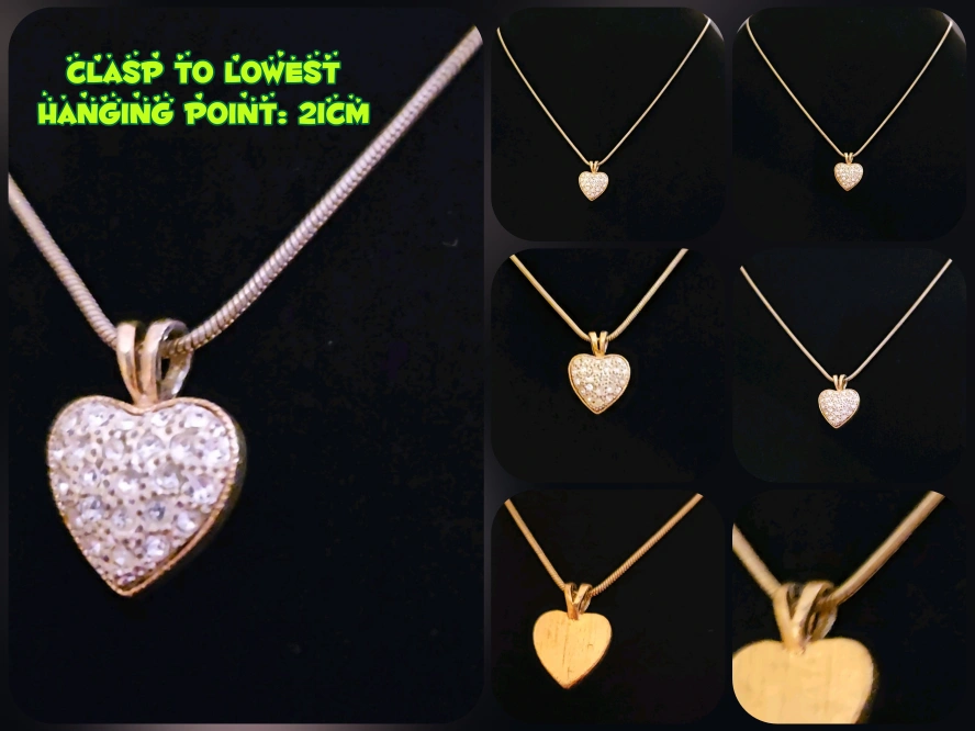 Gold tone Rope chain Neclace with Heart pendant accented with small round clear gemstones