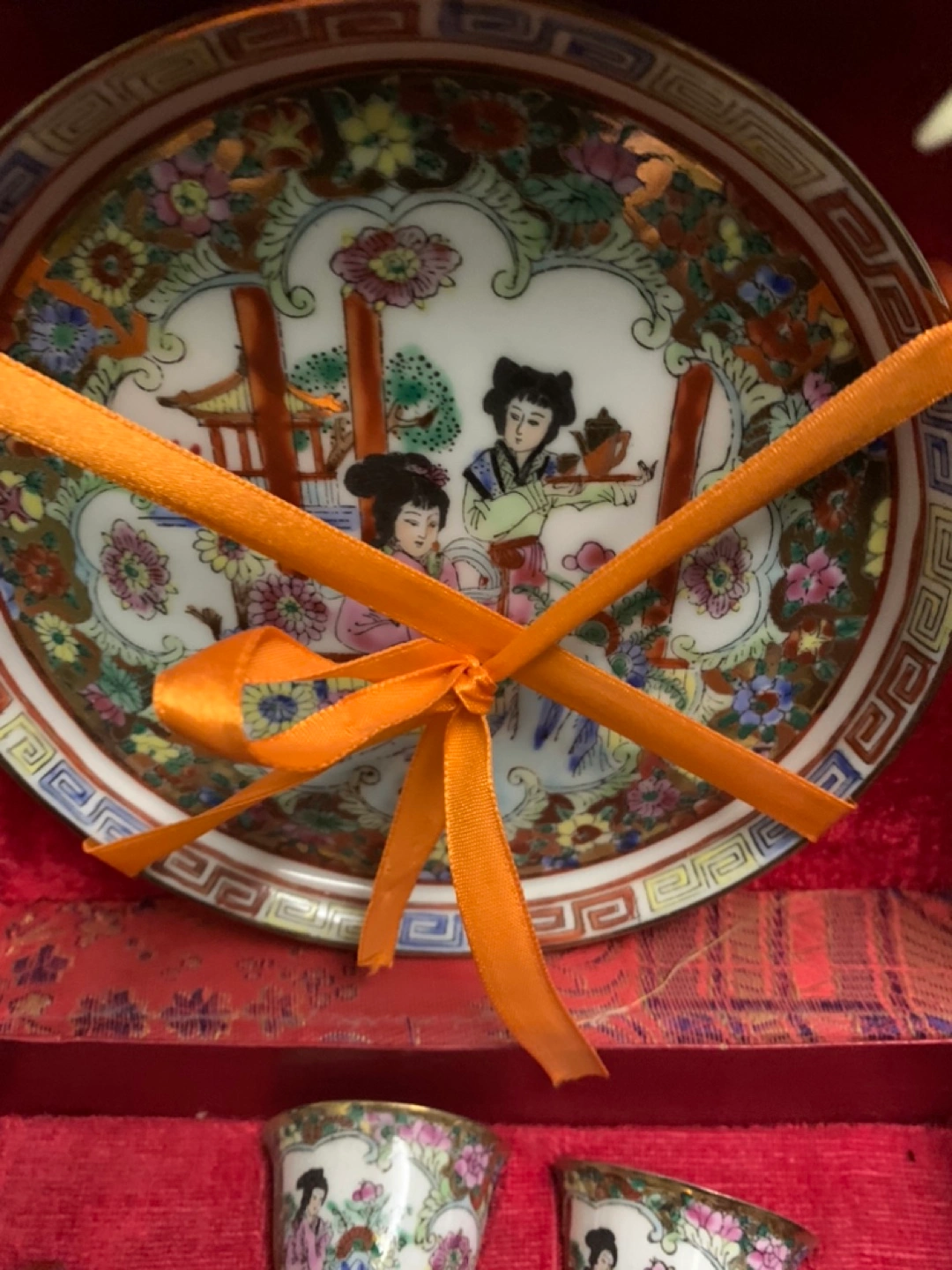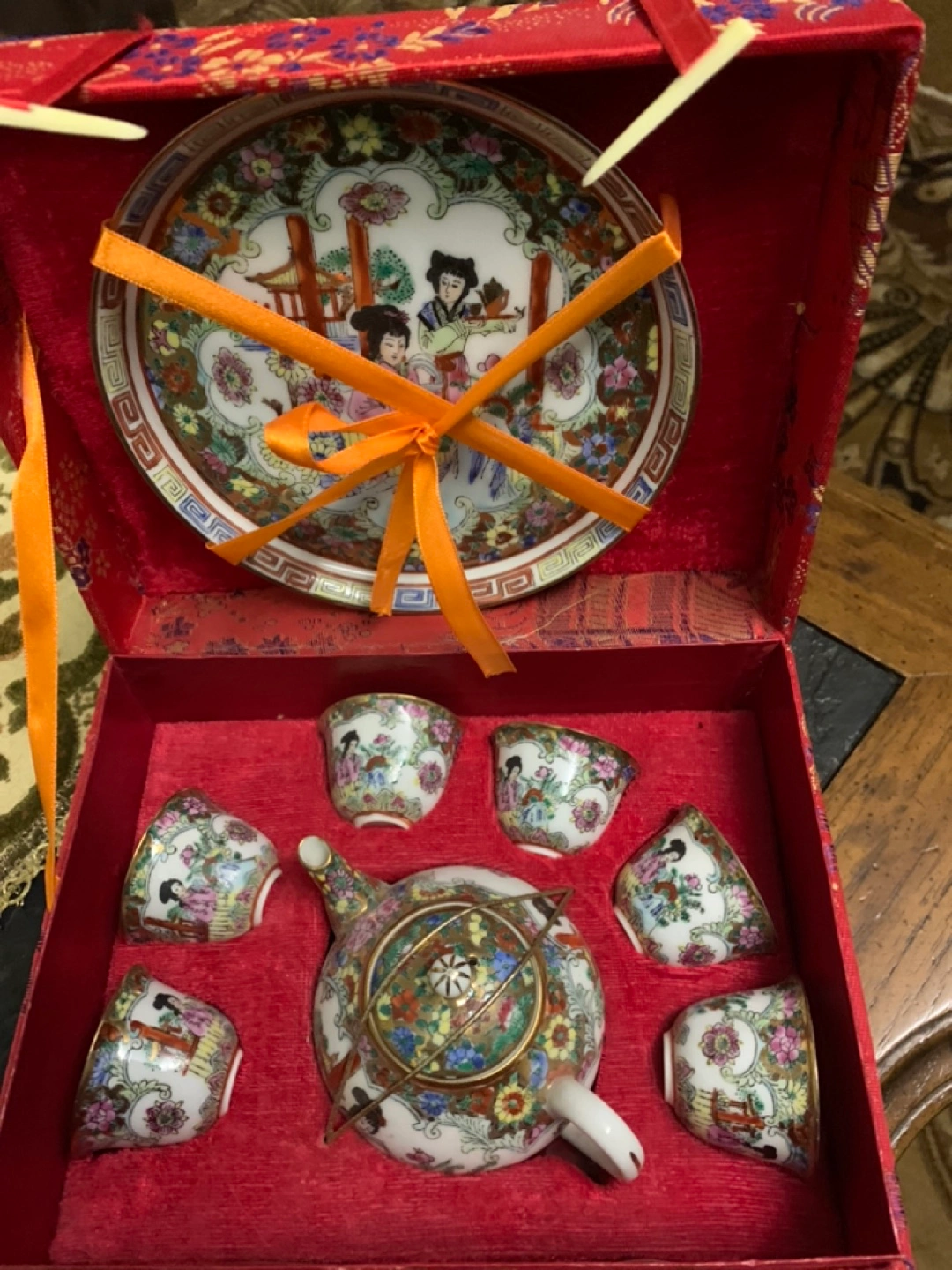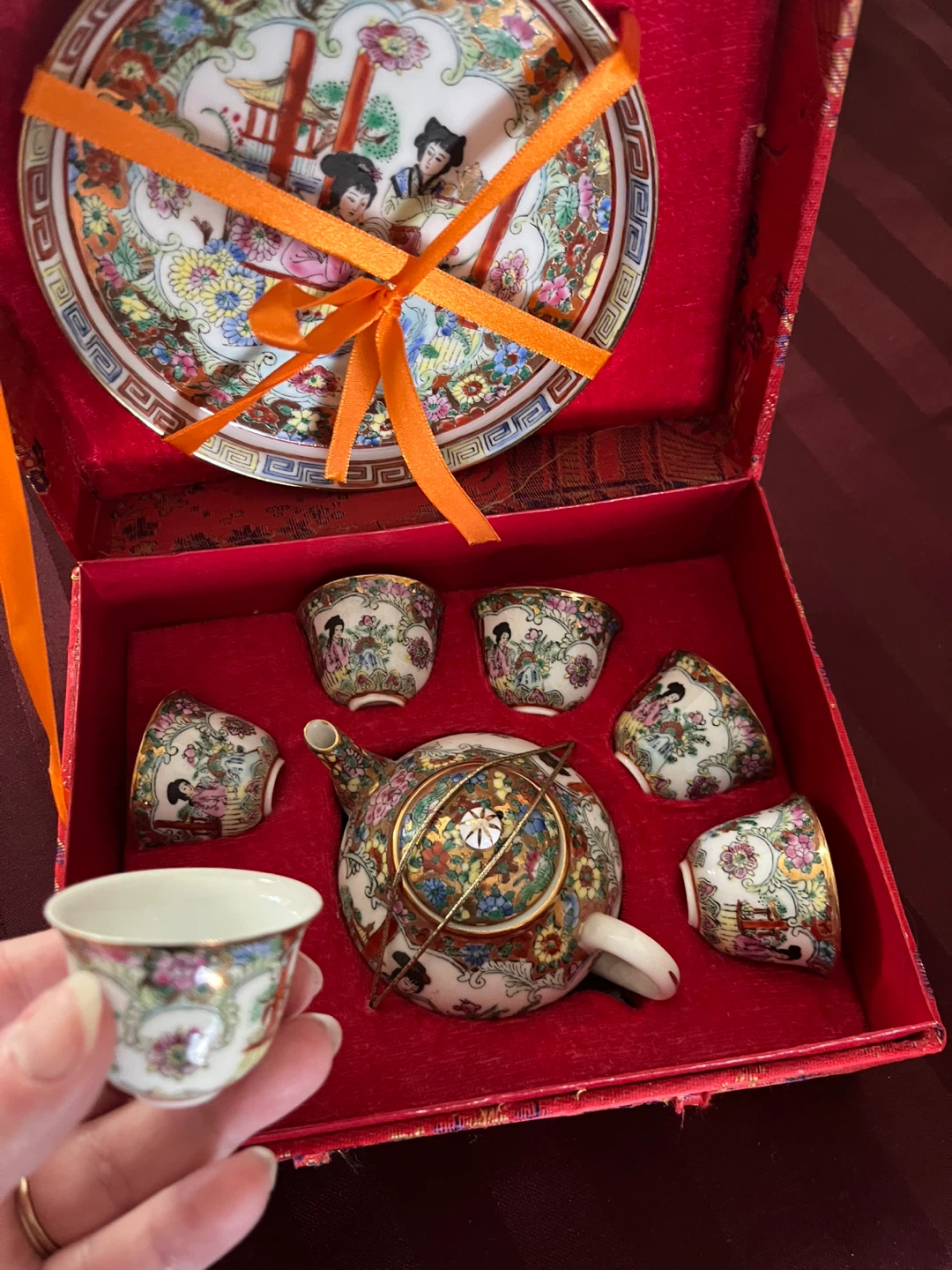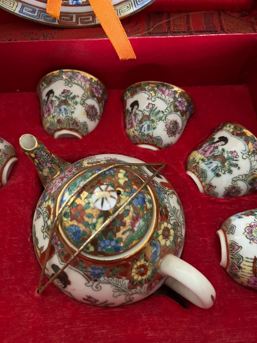 Vintage Miniature Porcelain Chinese Tea Set with Box