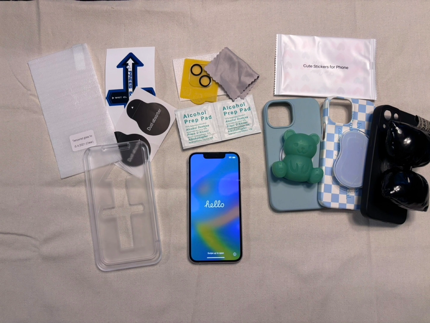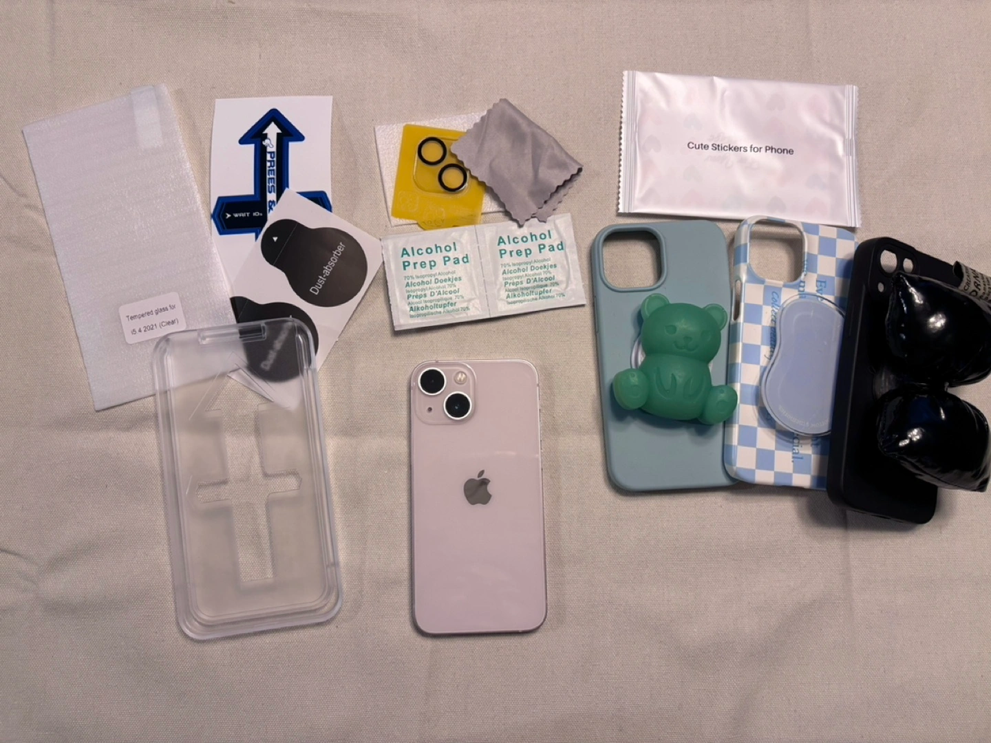 I'll give you a tempered glass screen protector with the installation kit, along with 3 cute phone cases compatible with it from Korea.