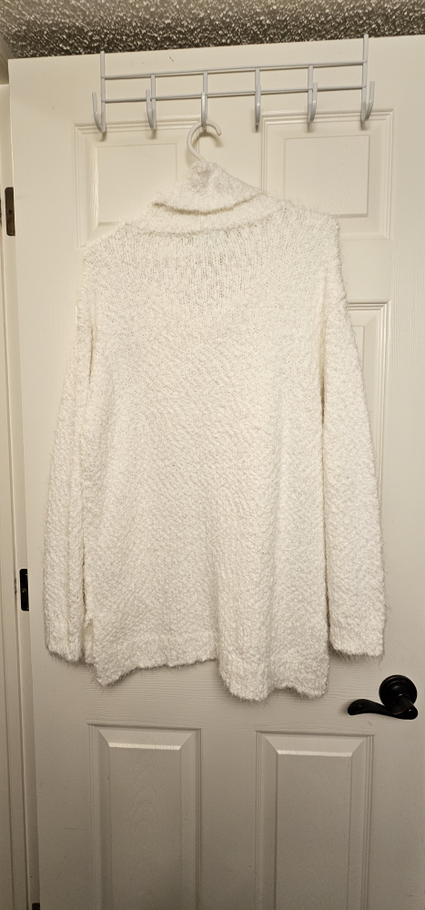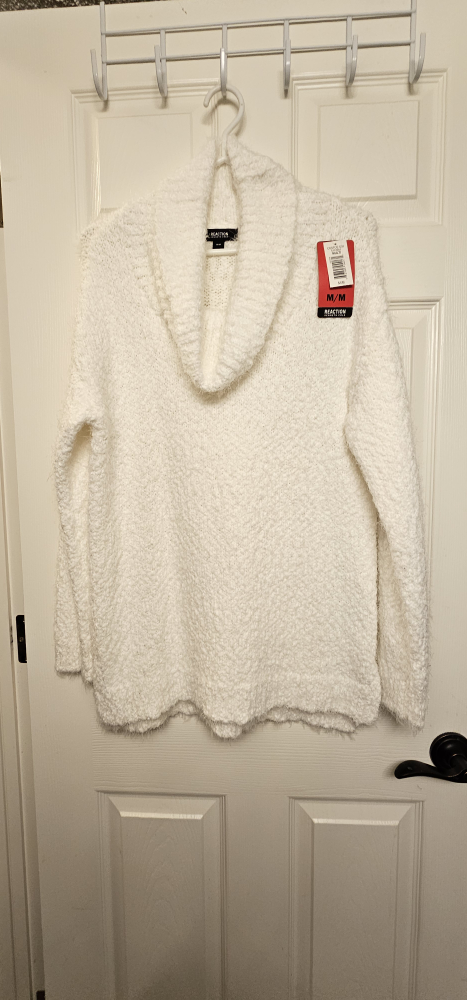 BNWT. White sweater with a cowl neck. Long sleeves. Size M/M. Super stretchy!