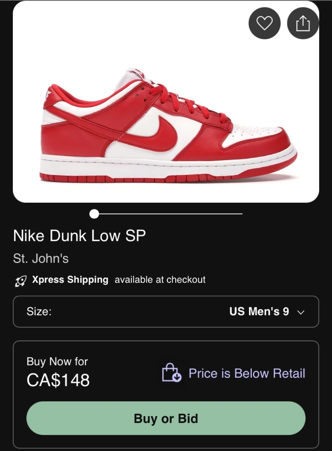 Red and white colourway, men's size 9