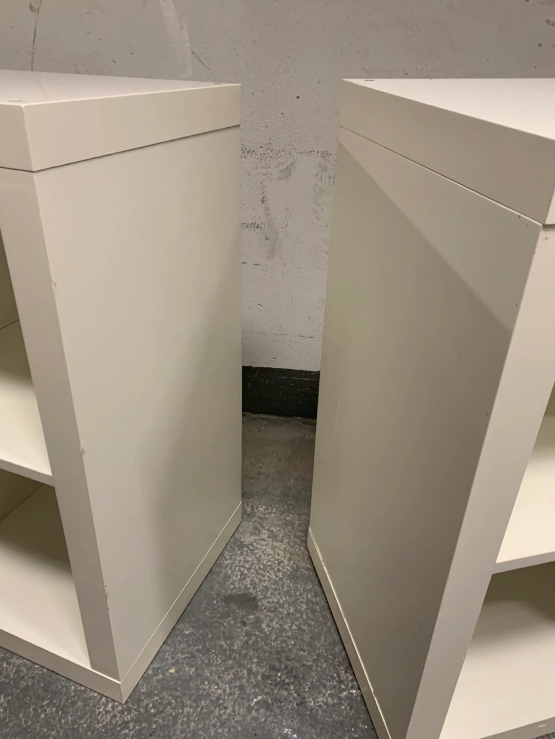 1000+Please, read all. ———— •Number of Kallax units: 2 •Colour: White. •Condition: Good w/ some minimal wear and tear, see pics showing it. •Measurements: See pic. •Price: Firm: -Buy 1 $40 -Buy 2 $70 •If you like to change your decor often, or just don’t know yet how to place them, buying 2 small units like these might be better than 1 large unit. ———— Pick up only. Cash only. See Map on listing. No bargaining on pick-up. Thx. 💛Please, look at my other listings for great bundle discounts.