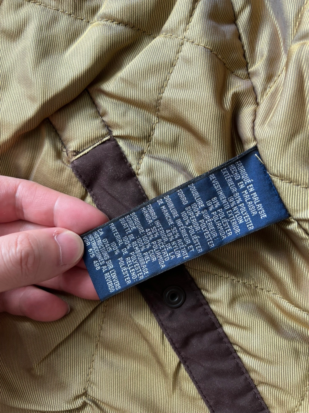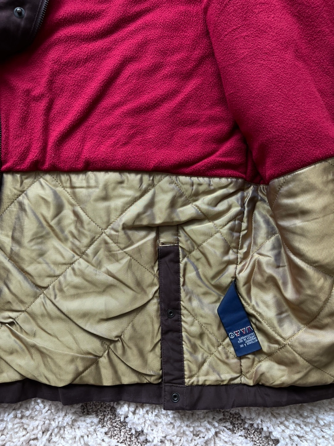 The jacket has button closures and snaps at the wrists.