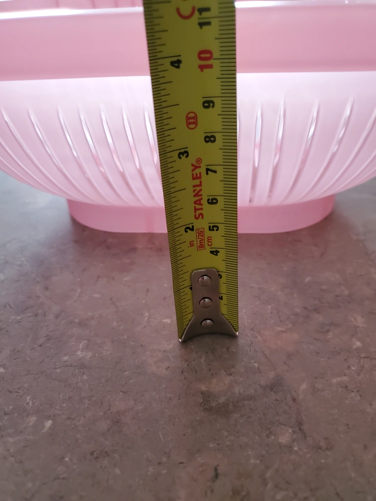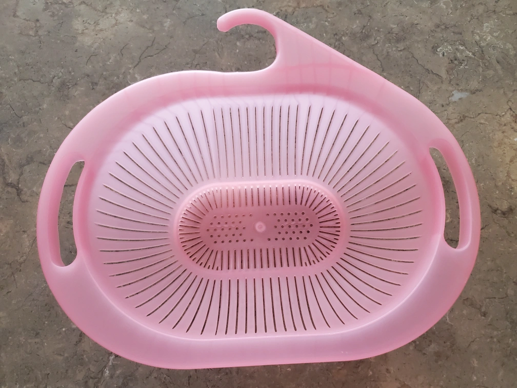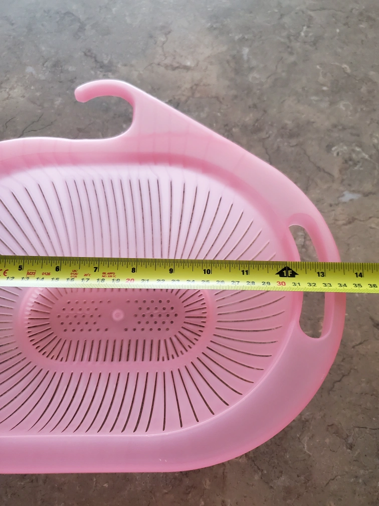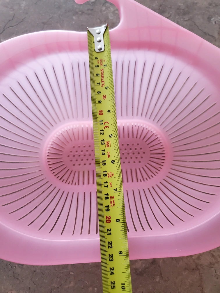 157Pink plastic colander with hanging hook. Dimensions in photos. Never used.