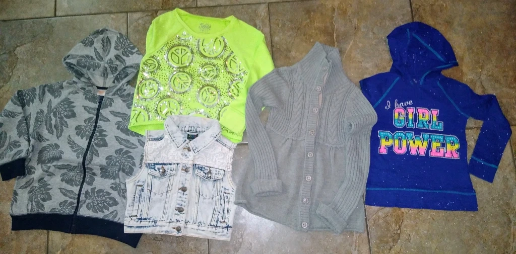Lots of girl's clothes in like-new condition. There are shirts, pants, sweaters, skirts, dresses, pyjamas and shorts. Many to choose from. Lot of 10 items for $20 or you can pick individual items for $3 each. Many sizes available. From a smoke and pet free home.