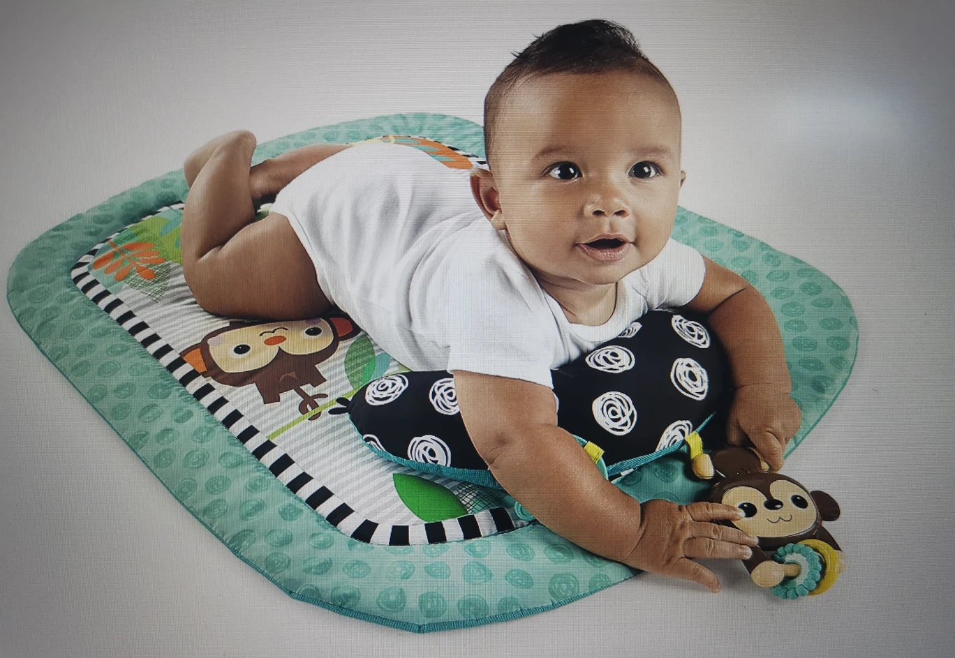 This cushioned play mat and pillow keep baby comfortable