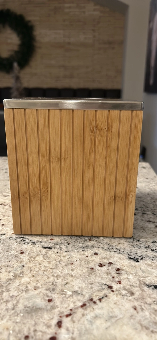 246Stainless steel and bamboo tissue box. Retails for $12.