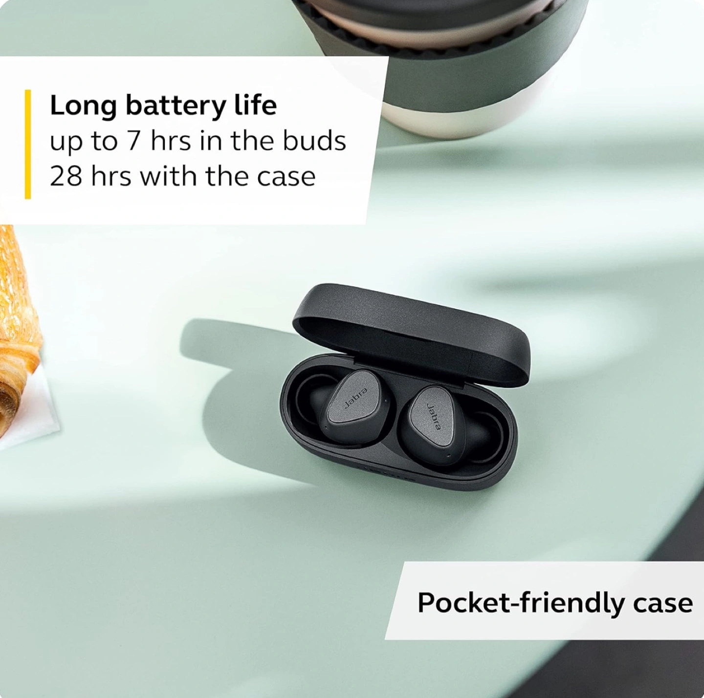 Jabra Elite 3 in Ear Wireless Bluetooth Earbuds – Noise Isolating True Wireless Buds with 4 Built-in Microphones for Clear Calls, Rich Bass, Customizable Sound, and Mono Mode - Dark Grey