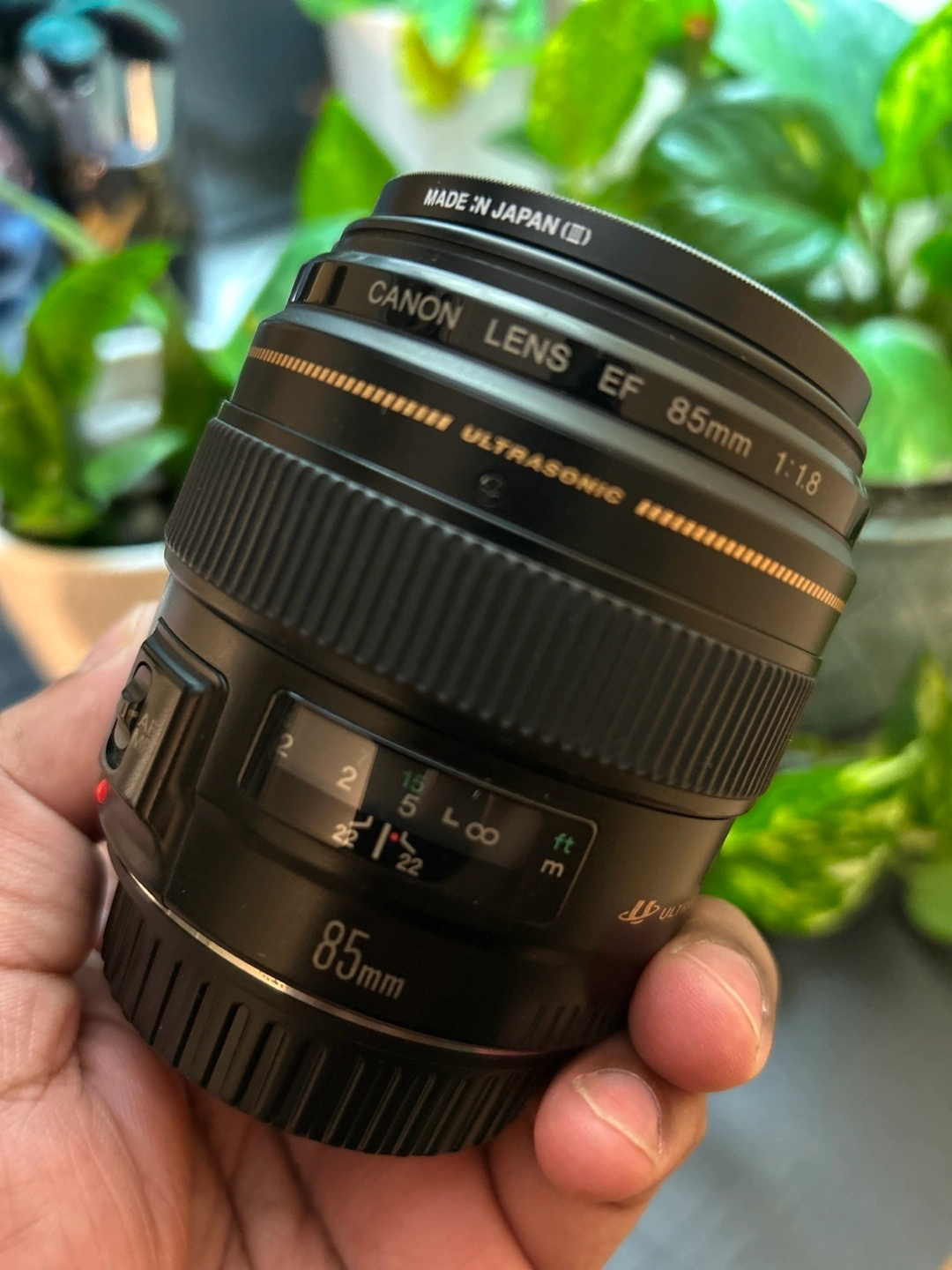 Canon EF 85mm f/1.8 USM lens. Includes lens cap and UV filter.