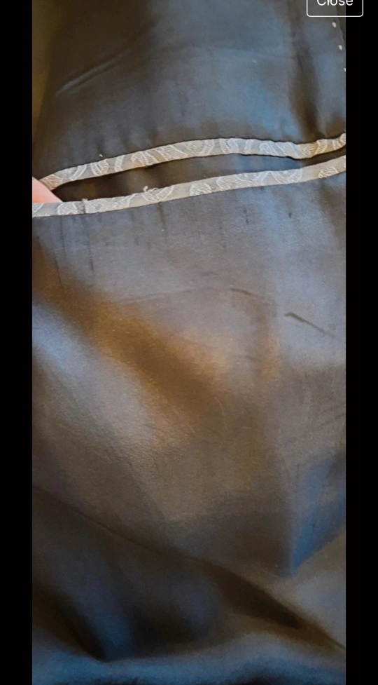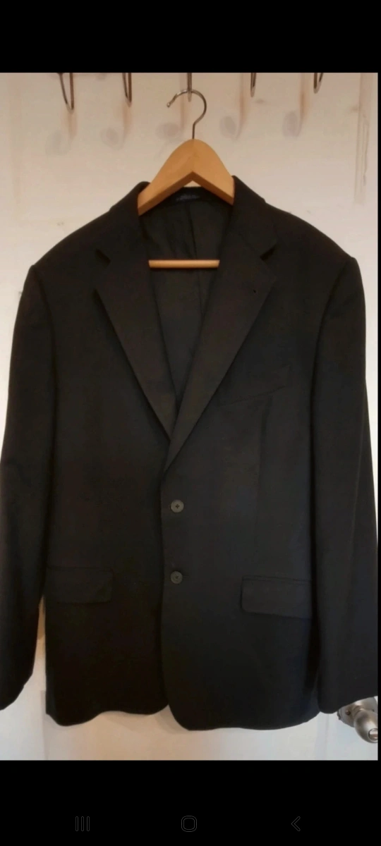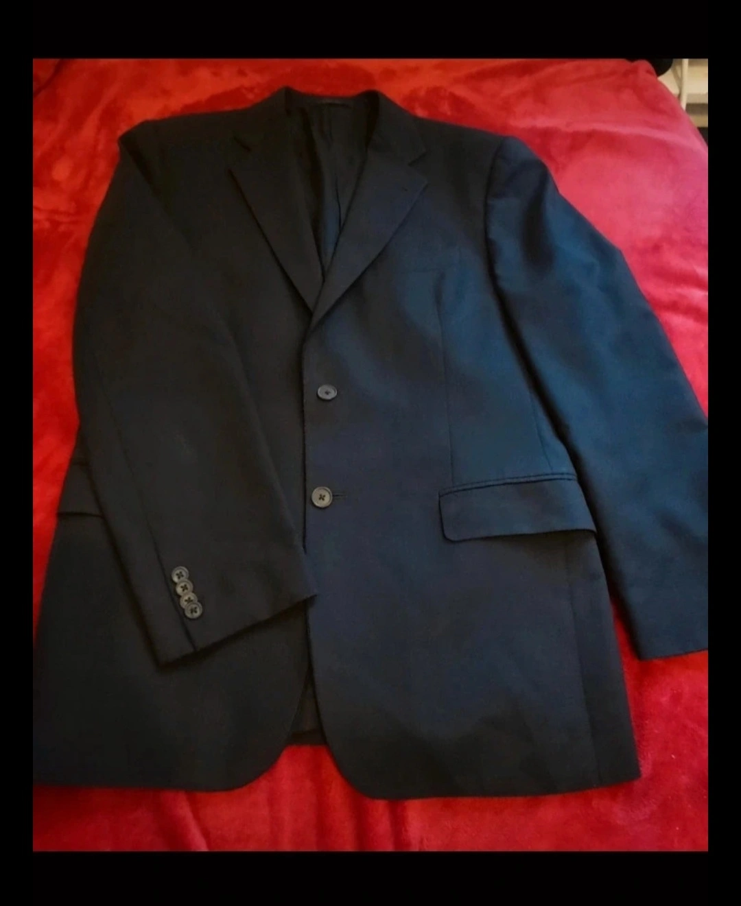 Black blazers for men. The item has pockets in both sides outside, also has pockets in both sides inside and a small pocket inside in the left side, ome pocket near the chester. The product has a small hole inside and small stain inside ( check photo).