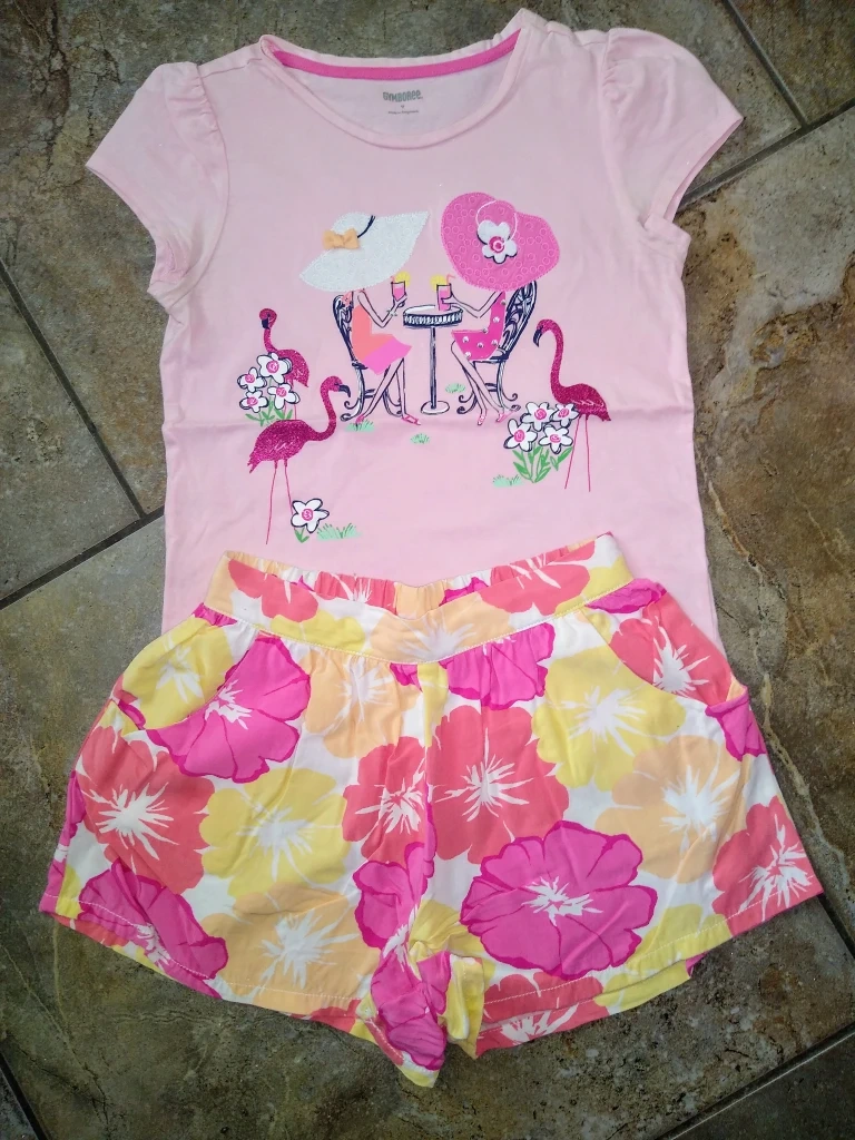 Girl's Size 7/8 floral shorts and embroidered t-shirt from Gymboree in like-new condition. From a smoke and pet free home.