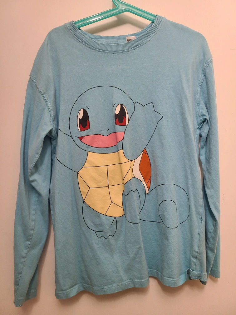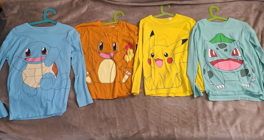 Set of 4 long sleeve Pokemon shirts. Each shirt features a different Pokemon: Bulbasaur, Charmander, Squirtle, and Pikachu. All shirts are in good condition and are a great size for a child. $10.00 for each or 4 of them for $30.00 Pick up only Located Gerrard st east and Sherbourne st.