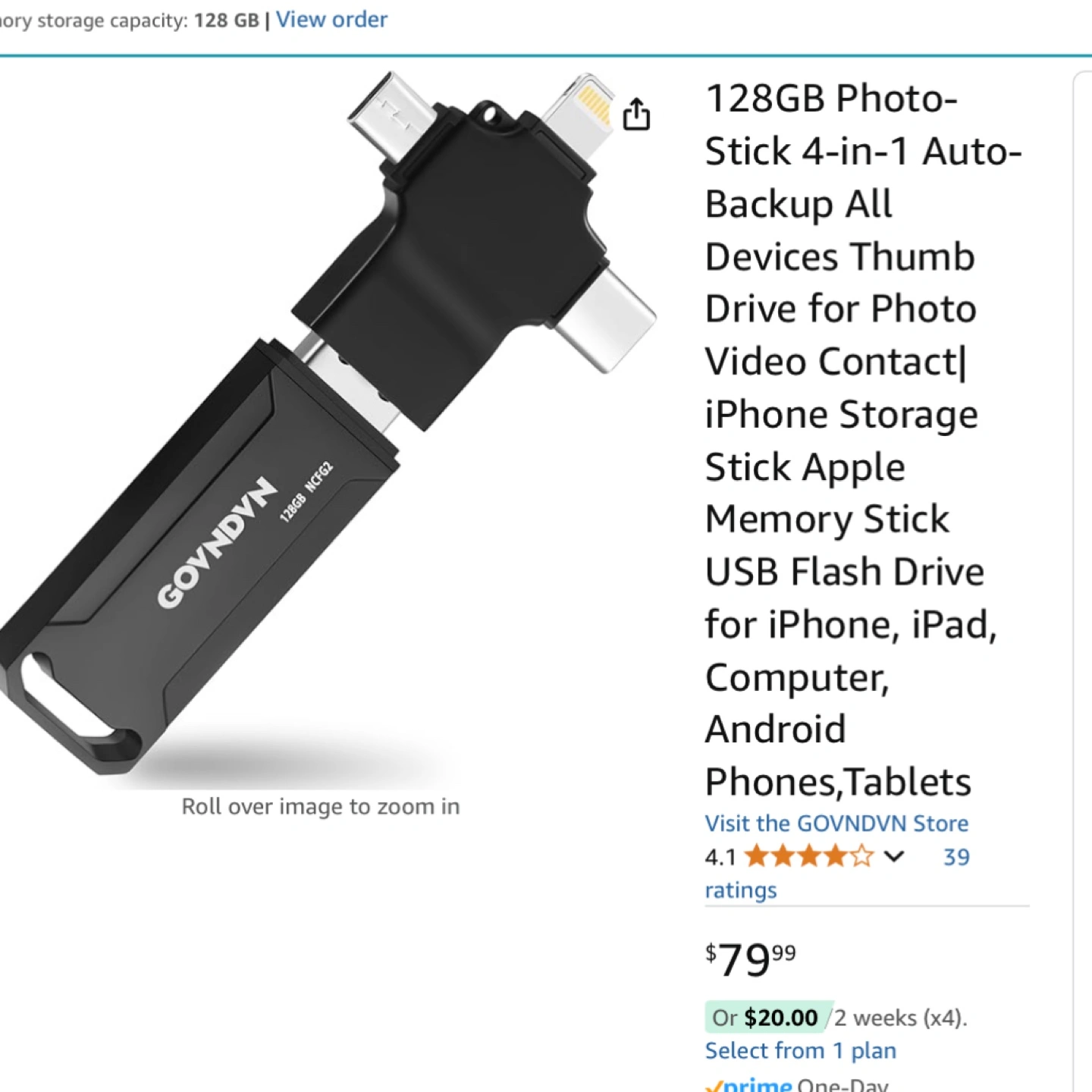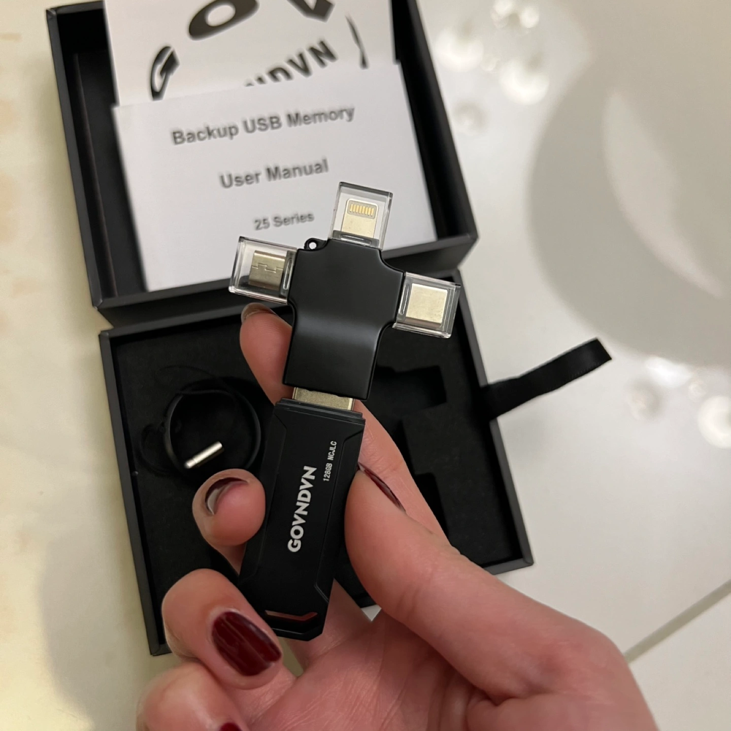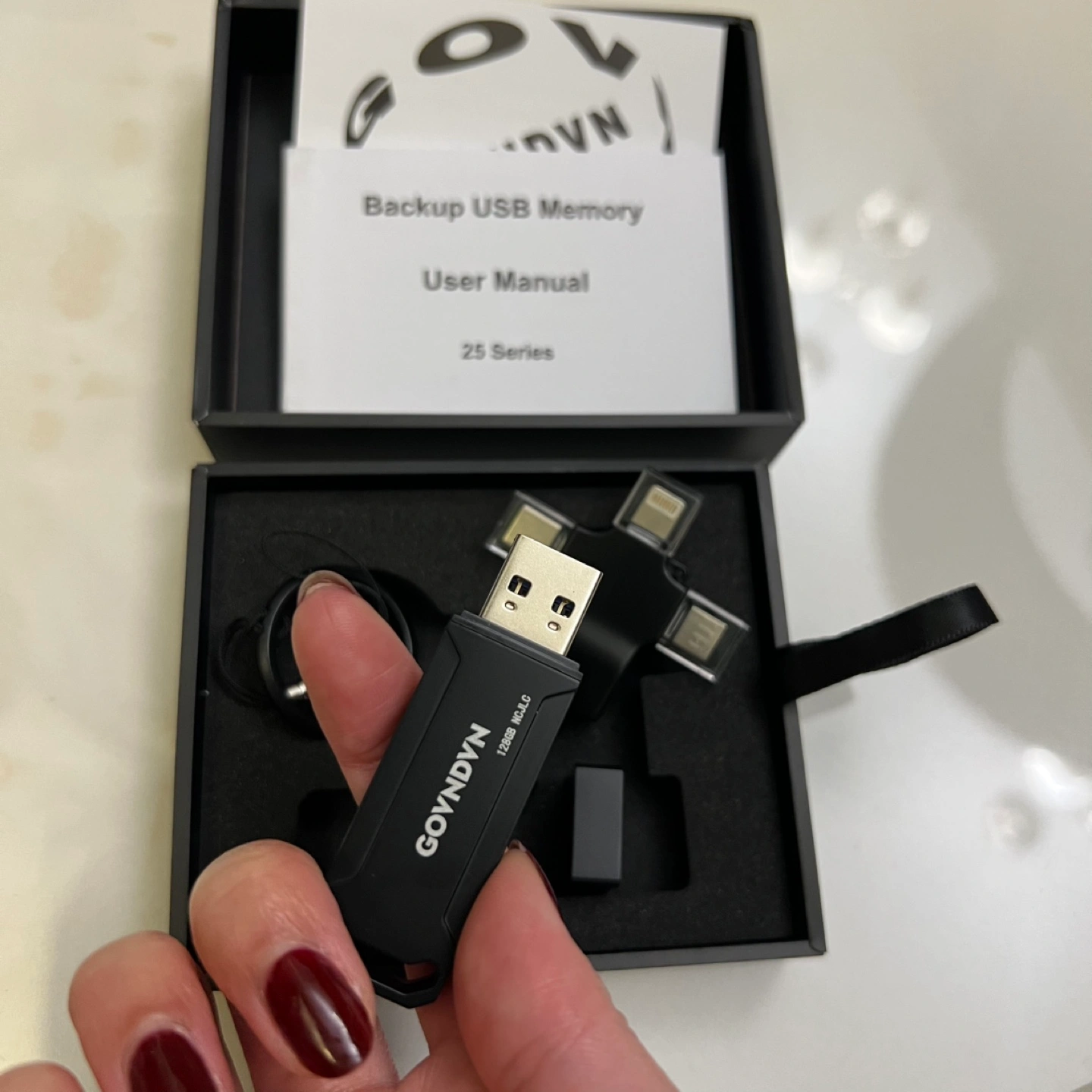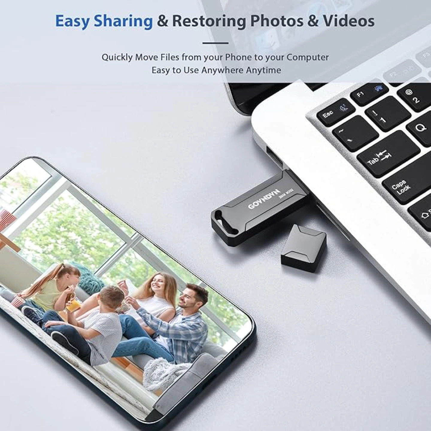 Can backup photos, videos, contacts, music, documents. Organizes everything in separate folders. Compatible with Apple products (iOS 10.0 or above), Android, phones, computers, and tablets.