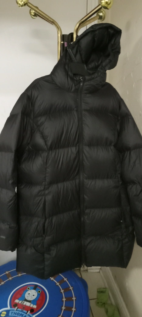 Black down puffer jacket with a hood. Zipper closure and two pockets. jacket is excellent condition price is firm if interested plz msg me thankyou an advance