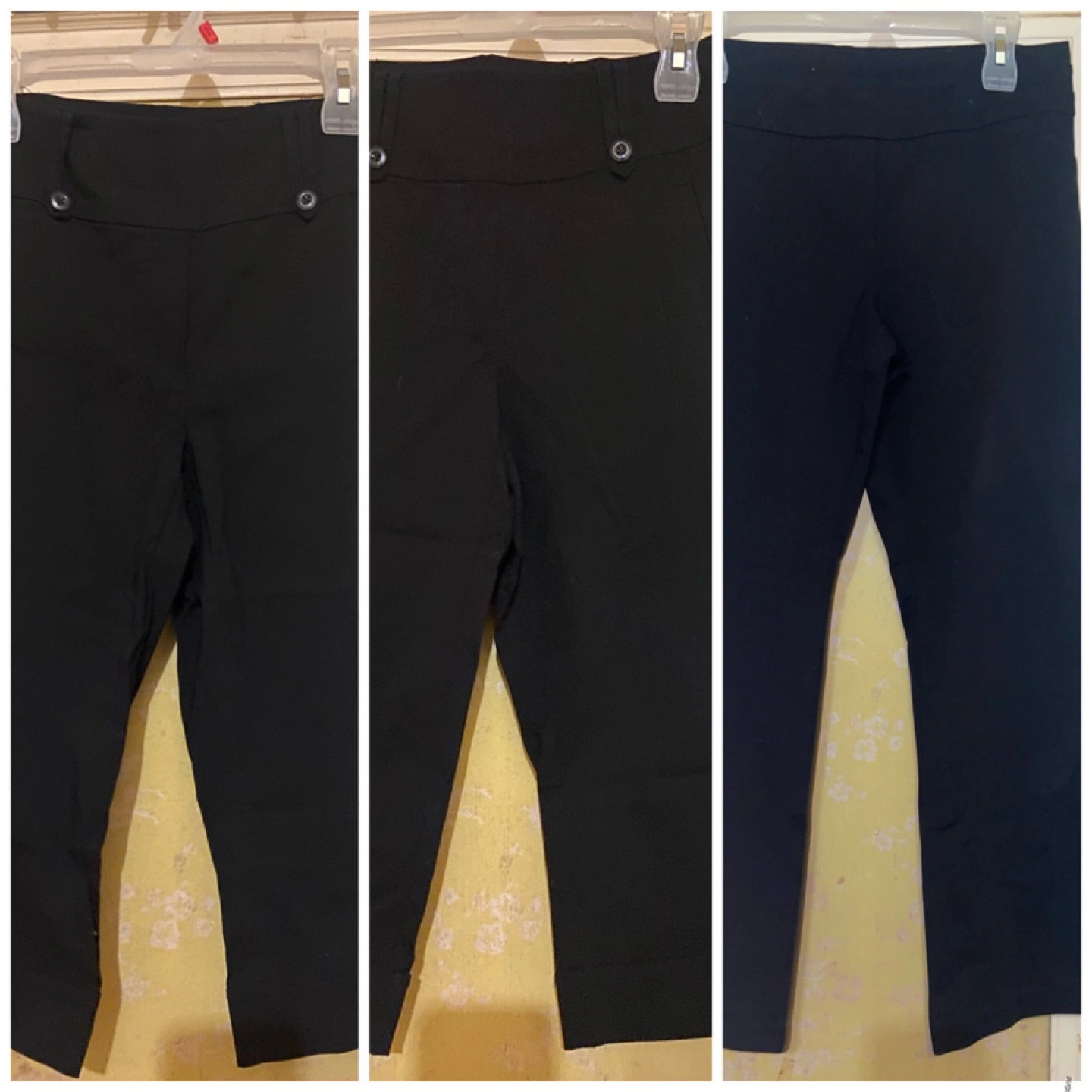 Reitmans Women’s pants size 7/ 9/ 10p Condition- Brand new no tags I’m very good condition. Colour- black Below is Information for each three pairs A. #2 Reitmans Capris pants Size- 9 Material- 73% rayon/ 24% nylon/ 3% spandex B. #1 Reitmans Capris pants Size- 7 Material- 73% rayon/ 24% nylon/ 3% spandex C. #3 Reitmans Petite pants length Size- 10p Material- 66% rayon/ 30% nylon/ 4% spandex Style- straight leg Cash Payment No Refunds / Exchange No try ons, No trading No holds. All purchases are Finally Sale From a Smoke Free home First come, First Serve Fast pick up Price-$10 for each pair Pick up- In East York, Toronto Ttc Station Coxwell ave subway station