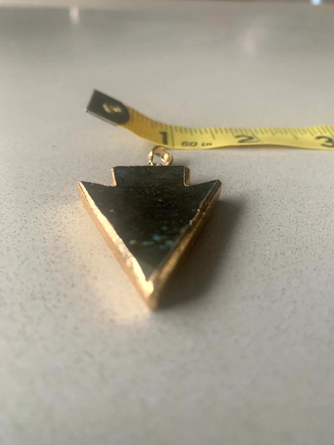 Gold-toned arrow pendant with a rainbow Labradorite crystal. Measure approx 2x2 inches.