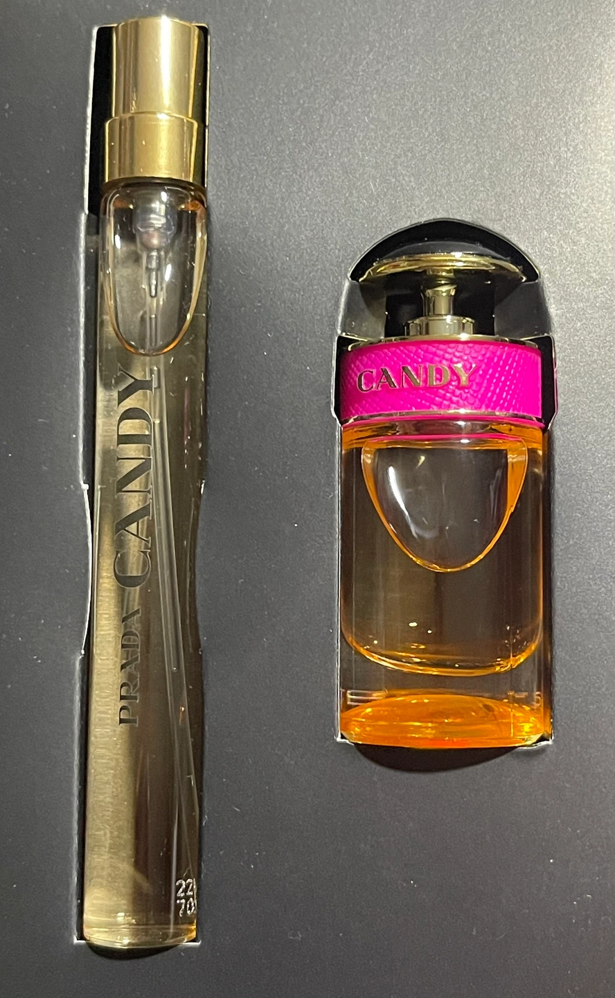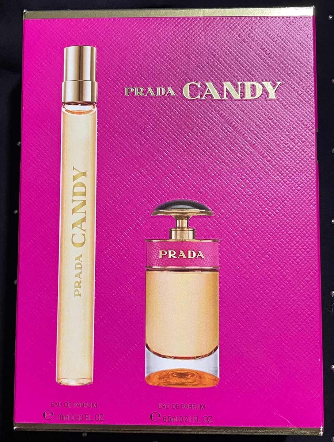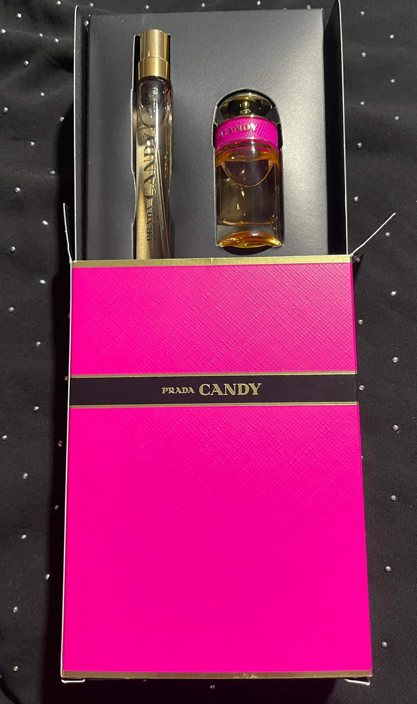 494Prada Candy perfume set, includes a 6.5 mL and 10 mL bottle. Eau de Parfum. Brand: PRADA Description: Authentic PRADA Perfume Condition: Never used/ sprayed (NEW) Candy Eau de Parfum Perfume Set by Prada, Purchased at Sephora. This set includes a mini and rollerball perfume. Details: Explore Prada Candy with this gift set featuring a mini and travel perfume spray. About the Fragrance: The playful and feminine fragrance blends notes of addictive and sweet caramel, delicately fragrant iris, and elegant white musk. It’s a fragrance for a woman impossible to ignore. Was Selling at: $40 ($25) Still in box and is ready for the gift giving season. If this AD is still up, Item is still available. If interested. Please feel free to message. This item is NEW in box.Thanks. Have a great day.