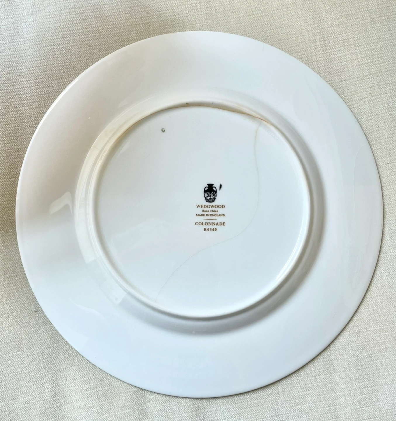 WEDGWOOD BLACK COLONNADE REAL GOLD RIM DINNER PLATE - 8” - HAIRLINE CRACK AND STAIN