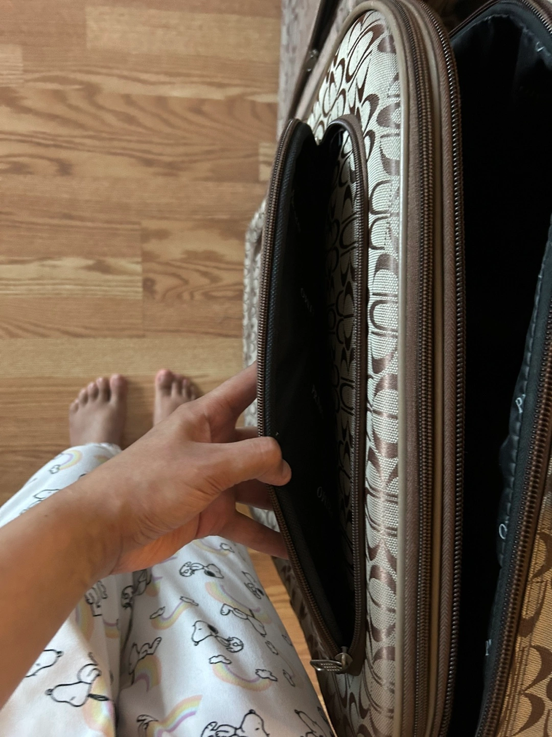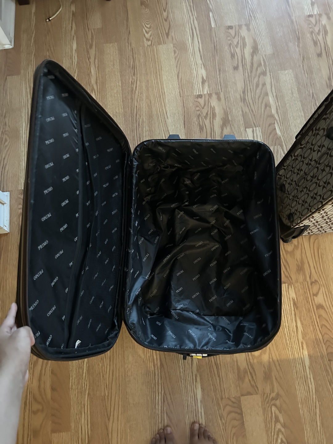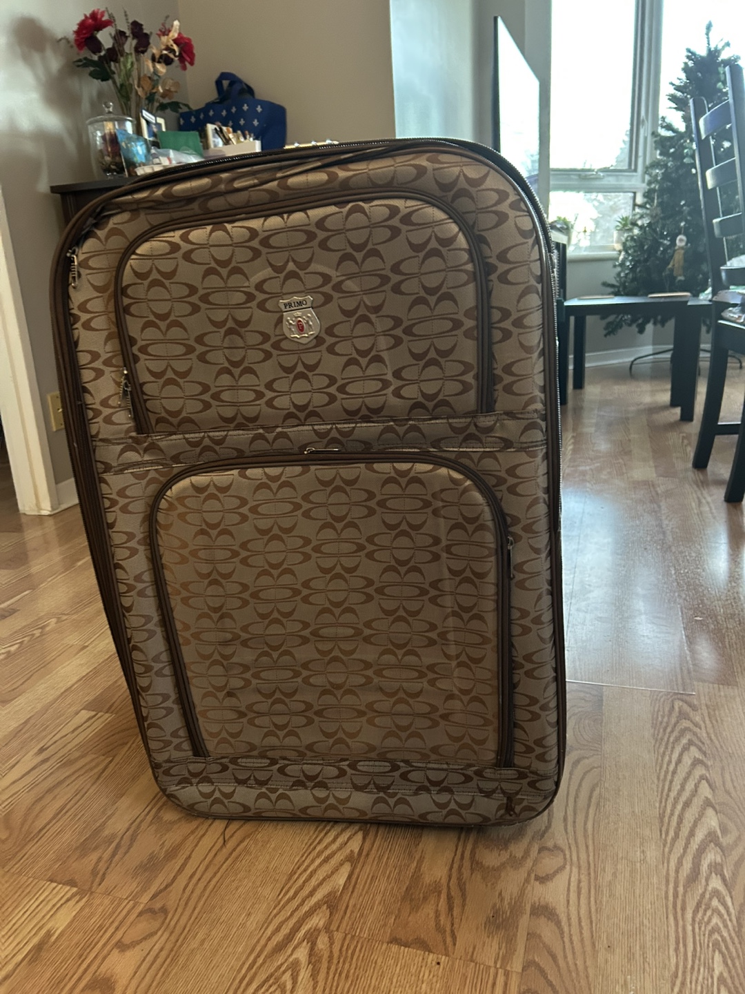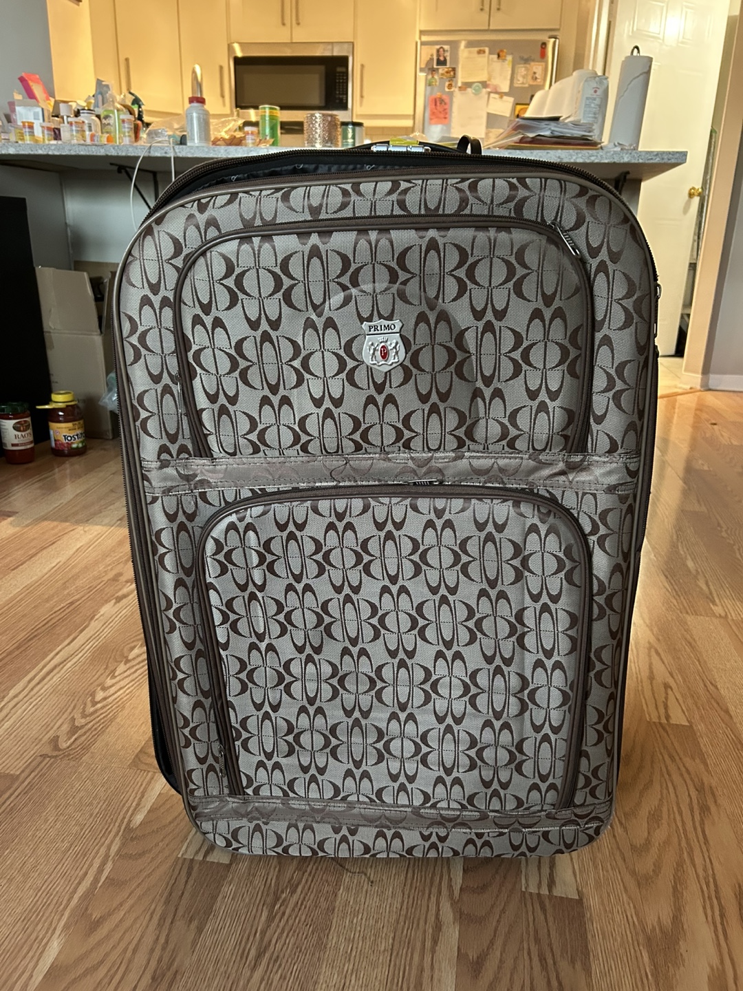 Set of two large suitcases with rolling wheels. Brown and black pattern. Large fully functional suitcases, well used but still in good working condition. Message if you want any specific pictures that aren’t already included! Size. Height: 28 in/71.5 cm
