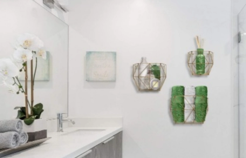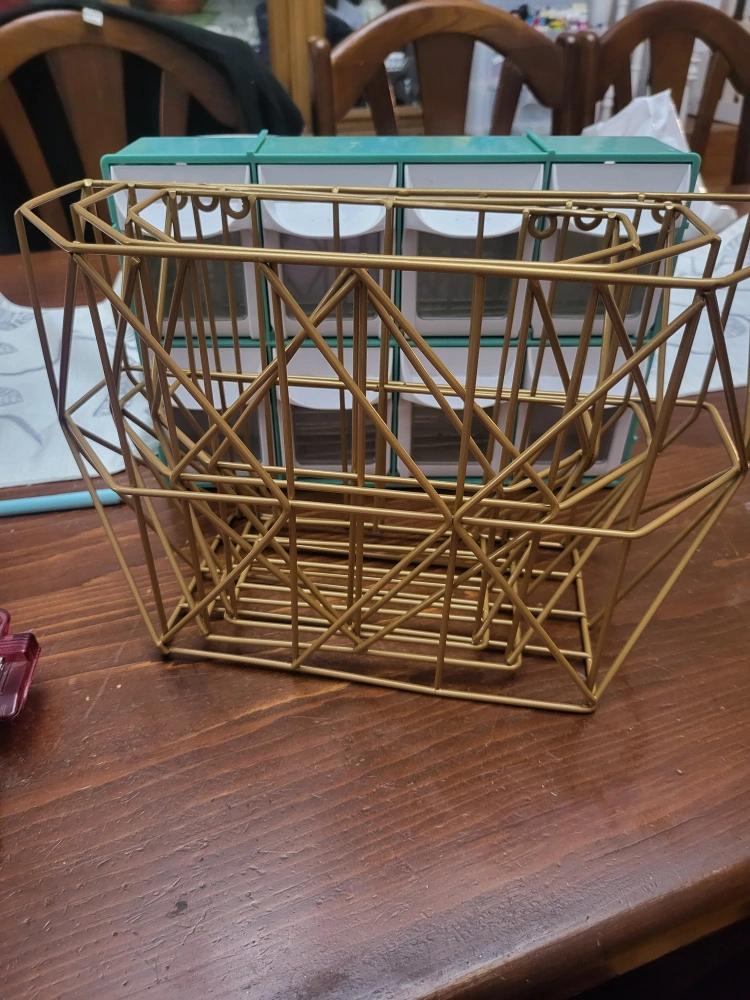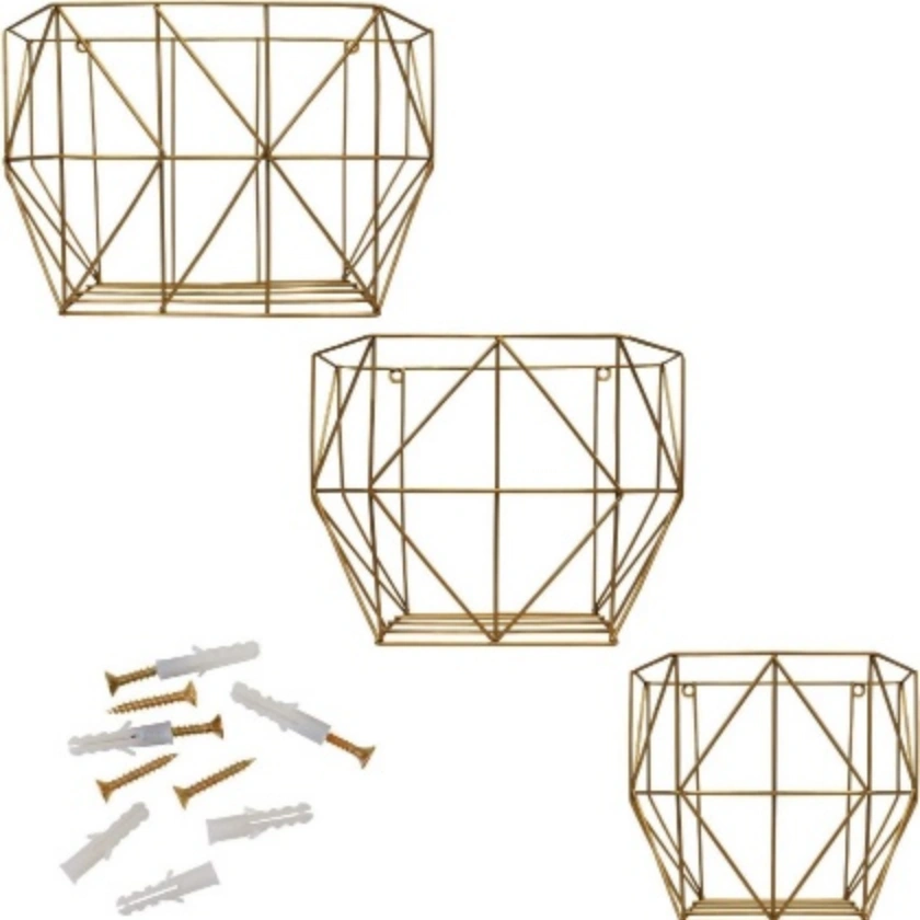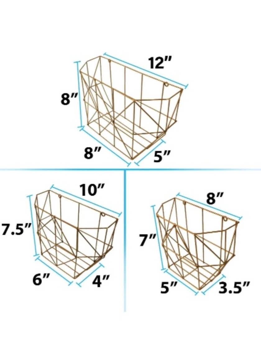 Set of 3 gold wire baskets. Great for organizing and adding a modern touch to any space.