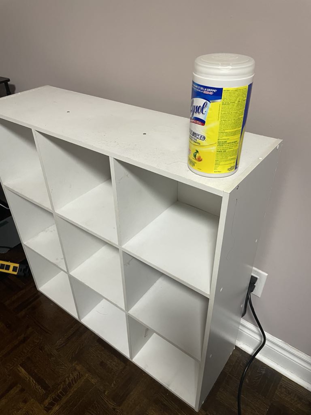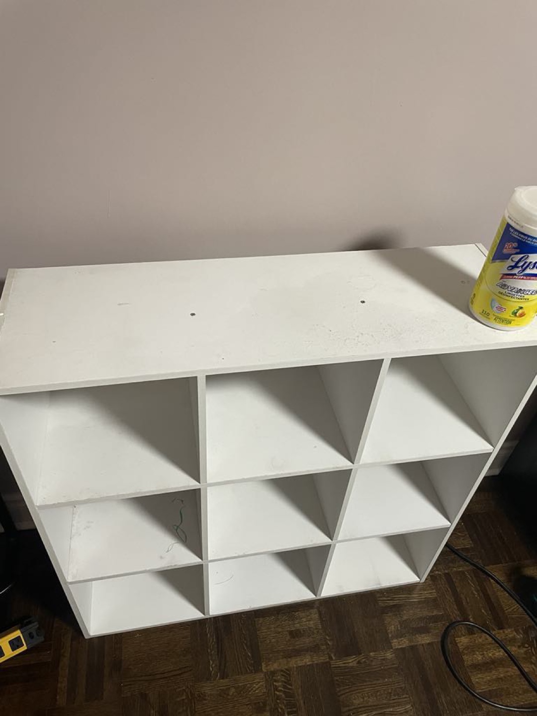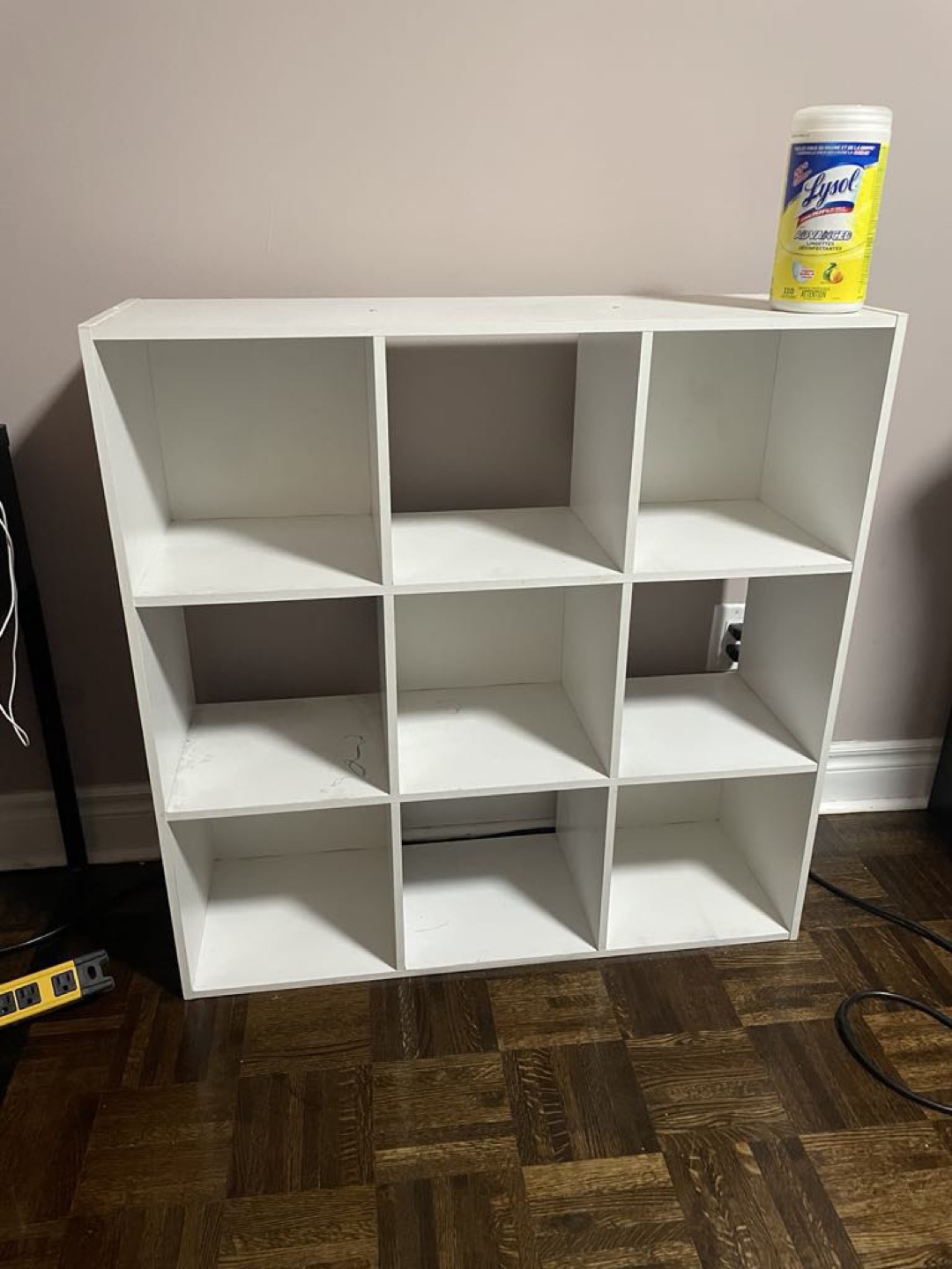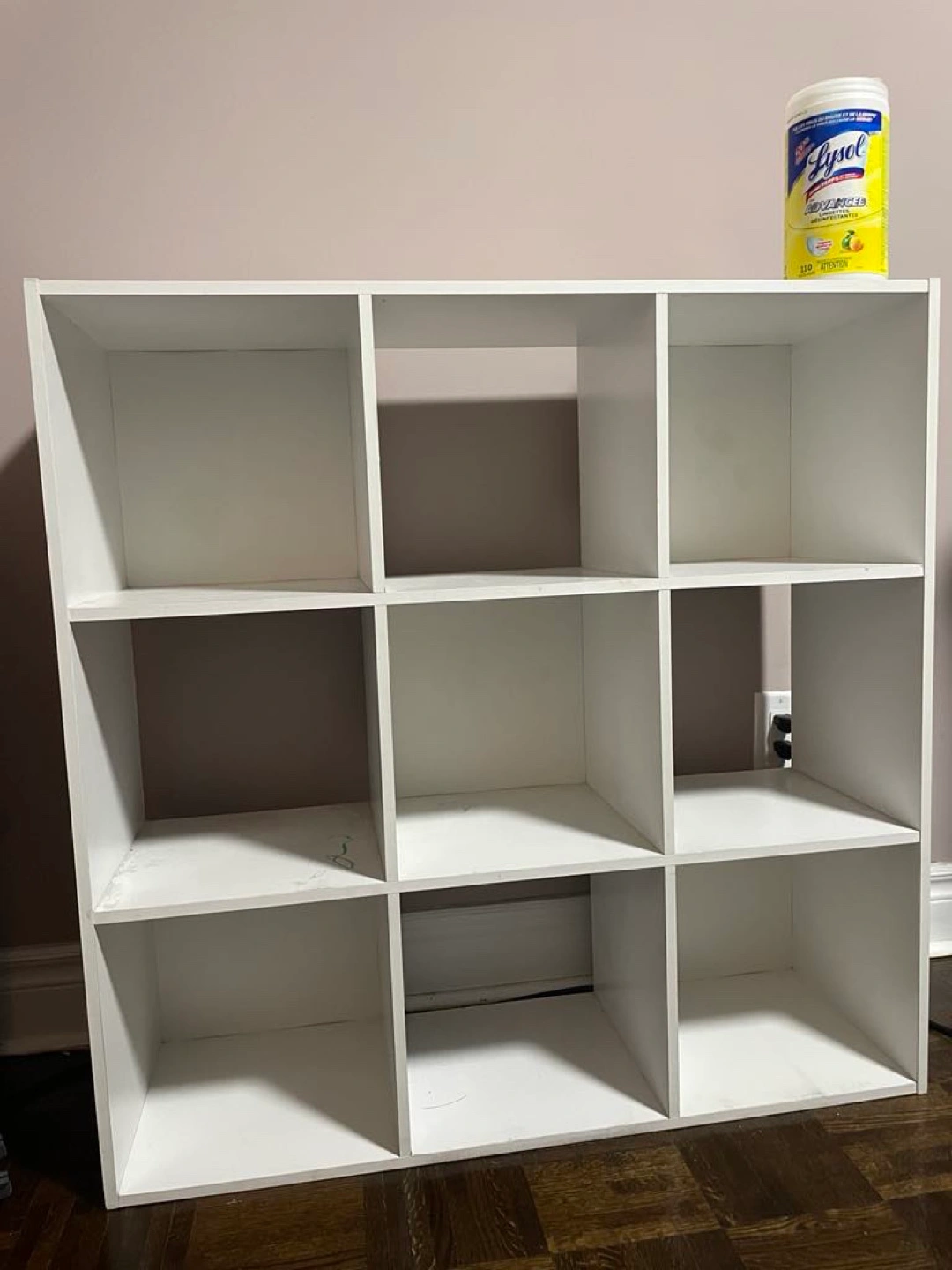 White 9 cube organizer shelf. Great for storing books, toys, or other items. Good condition.
