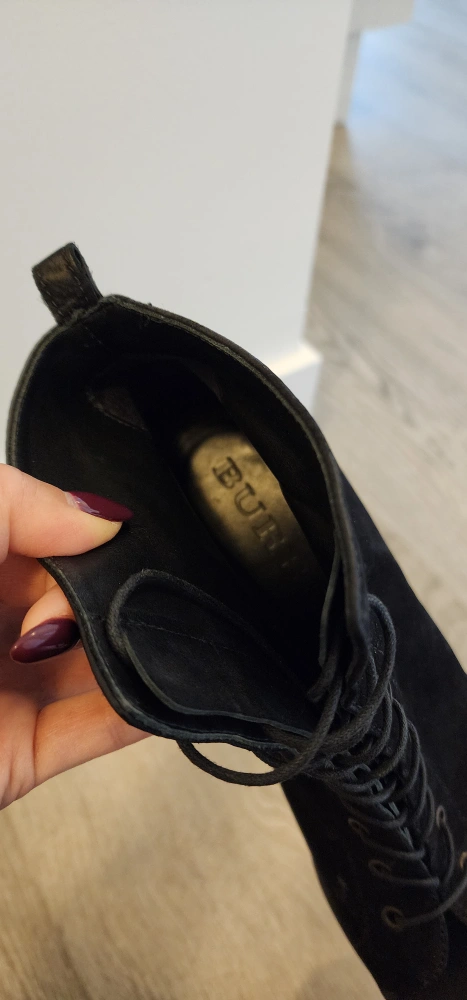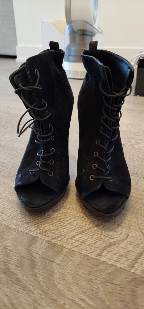 Burberry Black Nubuck Leather Peep Toe Lace Up Ankle Boots Size38