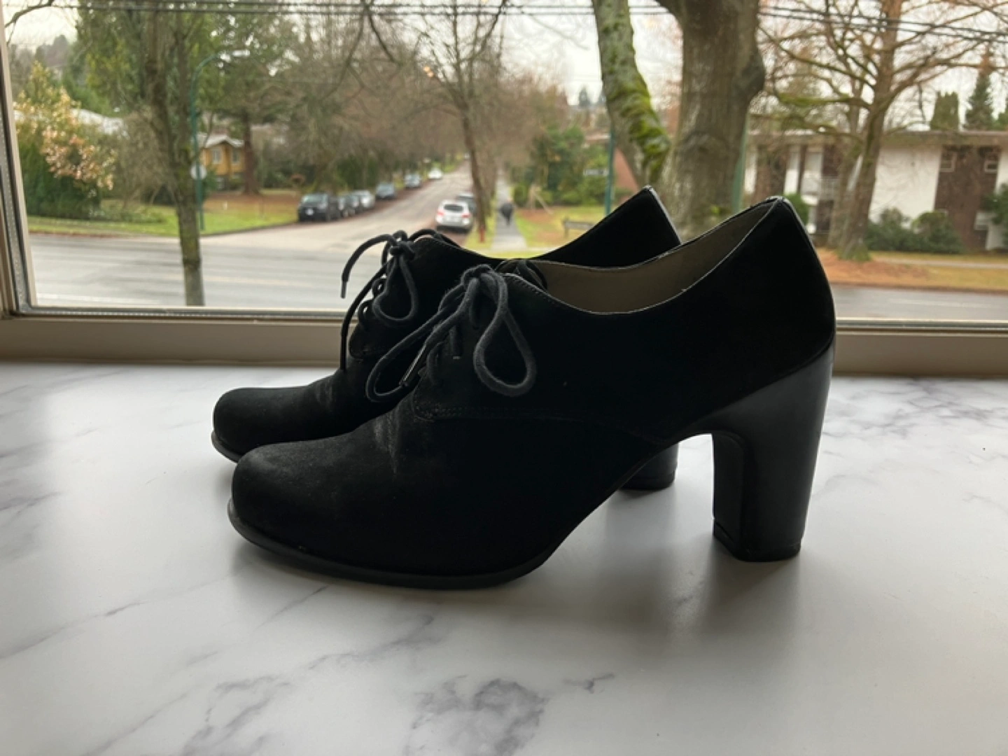 ECCO black suede heeled ankle boots with lace up closures. Size 38, 3 inch heel. Great condition, wore once and then made peace with myself that I’m just not built to walk in heals. They are actually quite comfy if you are good with heels. Pick up in Kerrisdale or Downtown Thierry.