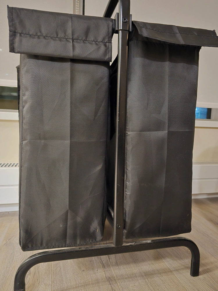 Laundry bags with stand. Two deep bags, so good to separate colour/white. Metal frame. From IKEA.