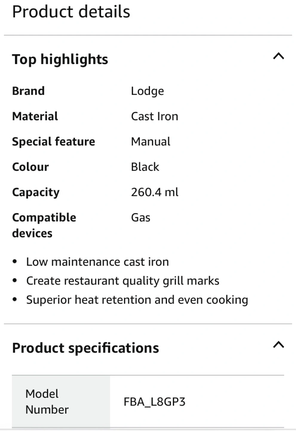 Pre-seasoned cast iron grill pan. Has a long handle. Great for indoor or outdoor grilling. Durable and superior quality, Lodge cast iron cookware is renowned for its workmanship- great addition to your kitchen