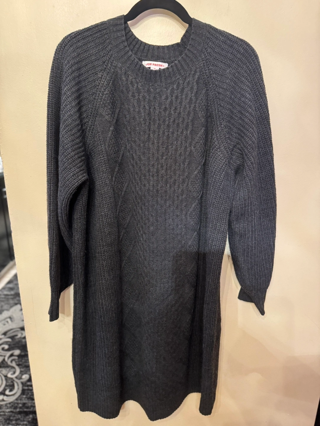 60Long sleeve grey sweater dress with a cable knit design. Size 1X.