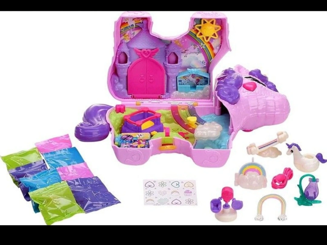 Polly Pocket Micro Unicorn Party playset. Includes castle, unicorn, and accessories.