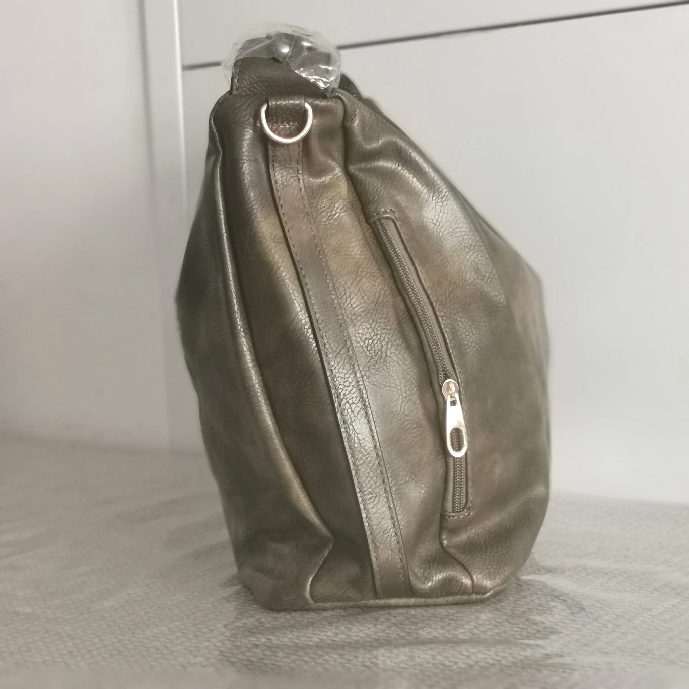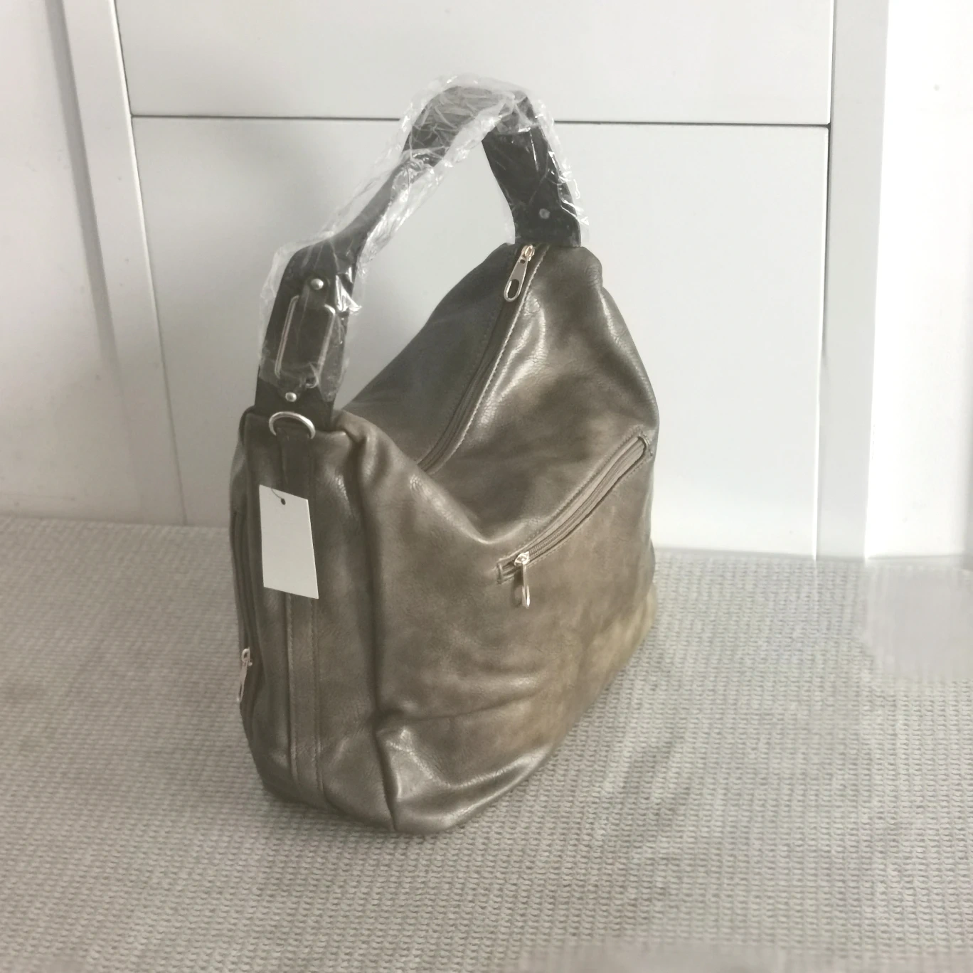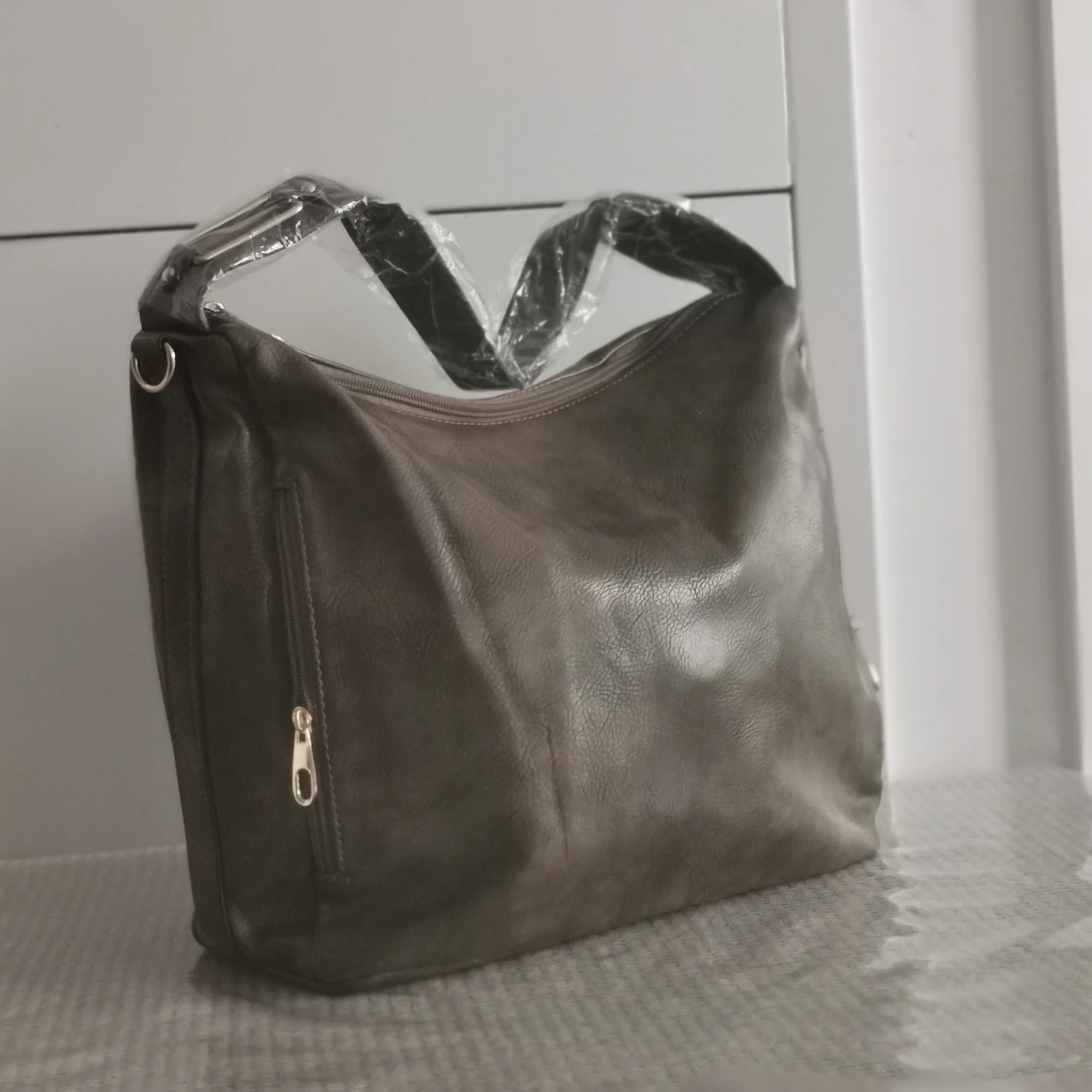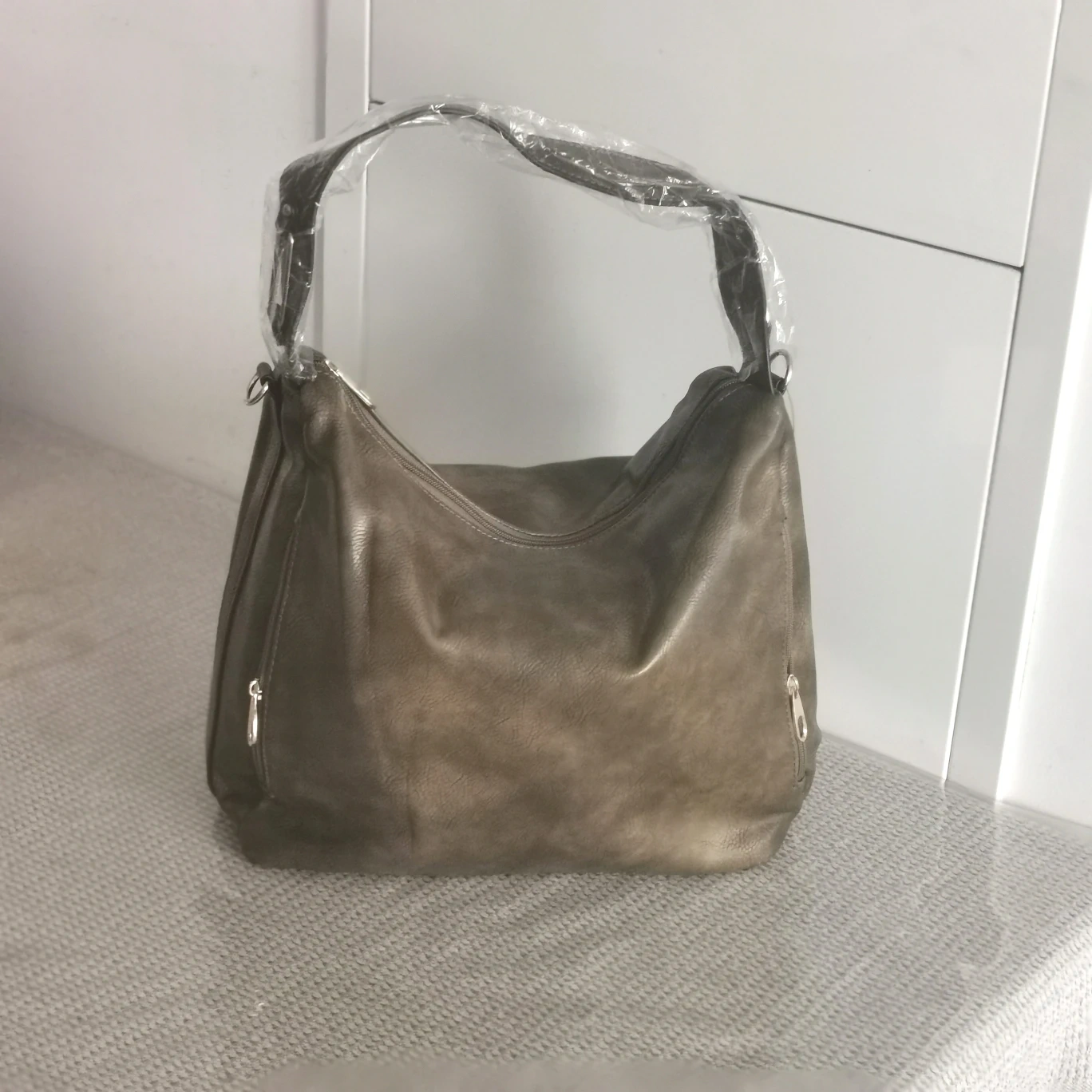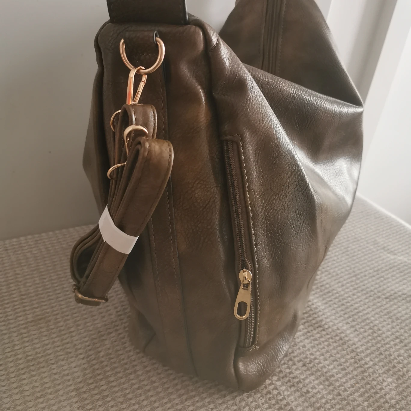 Brand new Torbee Green-brown Leather shoulder bag with gold hardware. Come with an additional detachable long strap for cross-body wear. It has a zipper closure, one zippered pocket inside, one on the back, and two zippered side pockets.