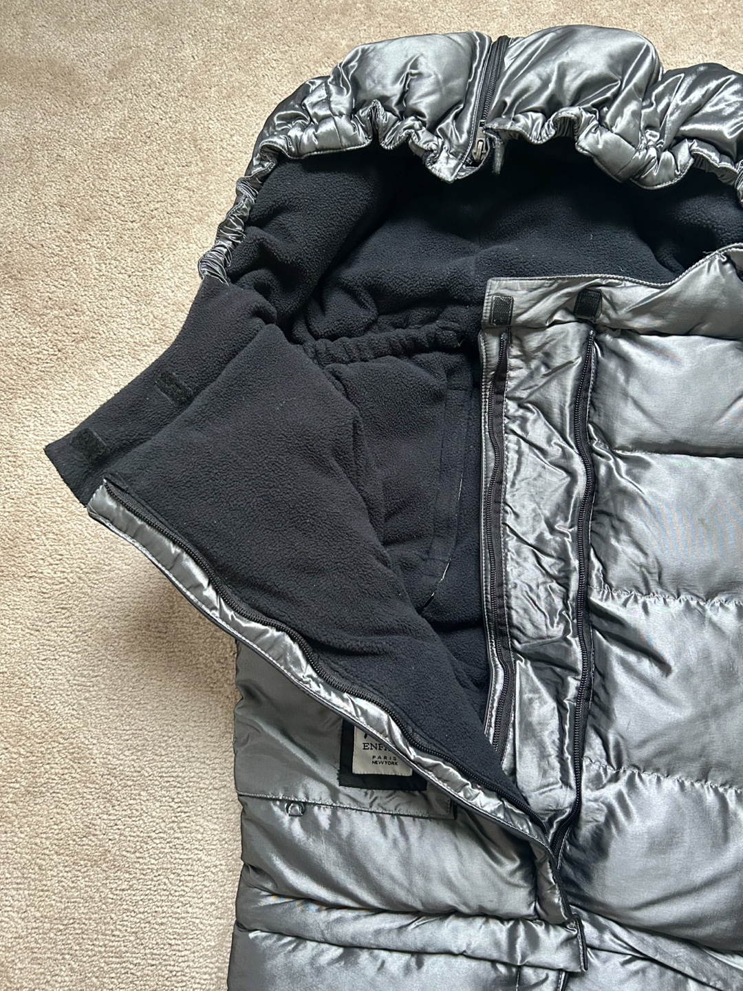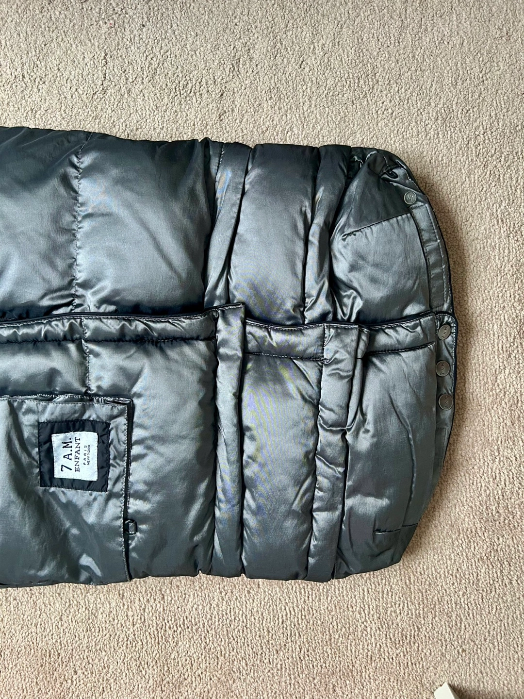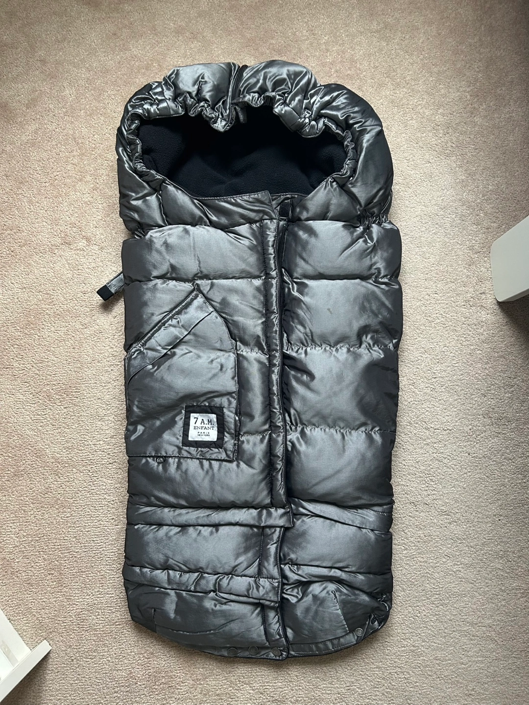 Warm, quilted, grey stroller blanket. All parts are working good. No pets no smoking.