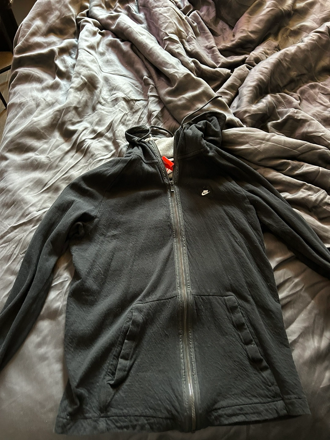 1000+Black zip up hoodie with a hood and two pockets. Size M.