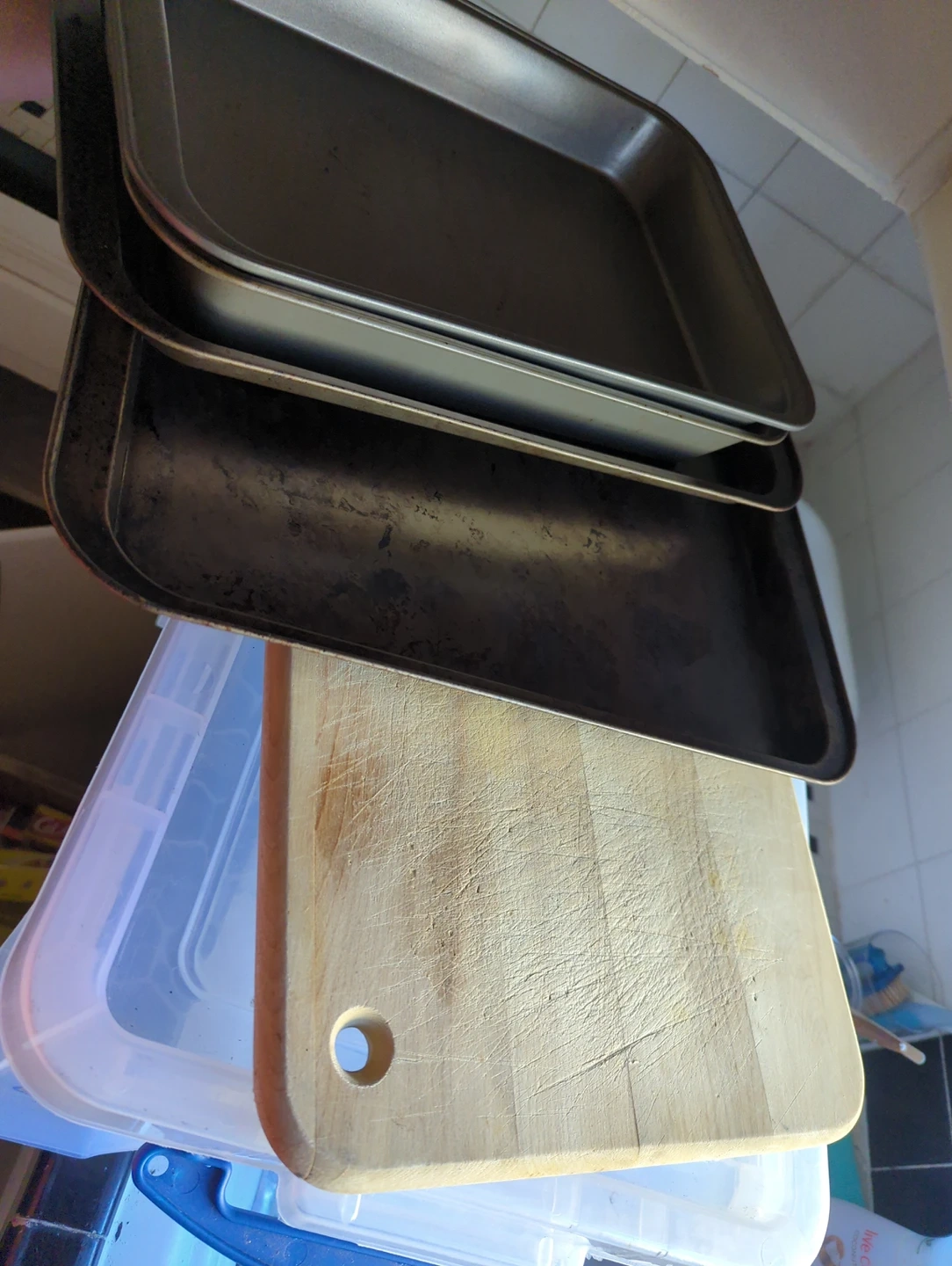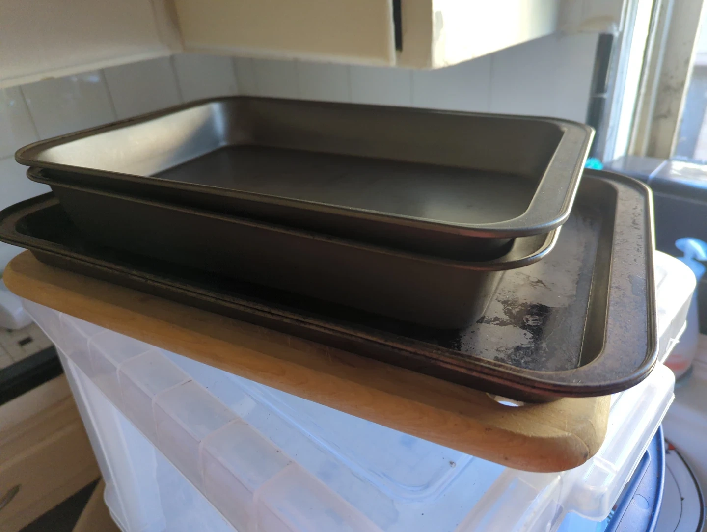 #FREECYCLE 2 Baking Sheets 2 Cake Pans 1 Wooden Cutting board
