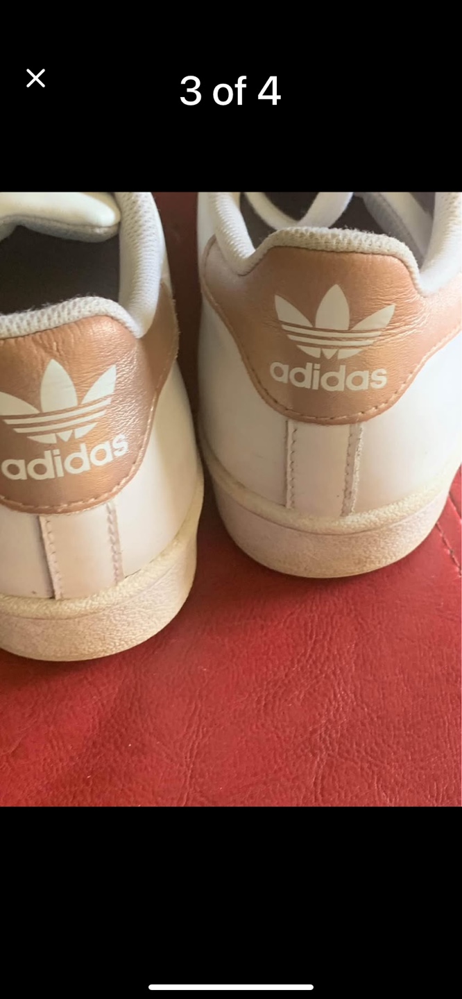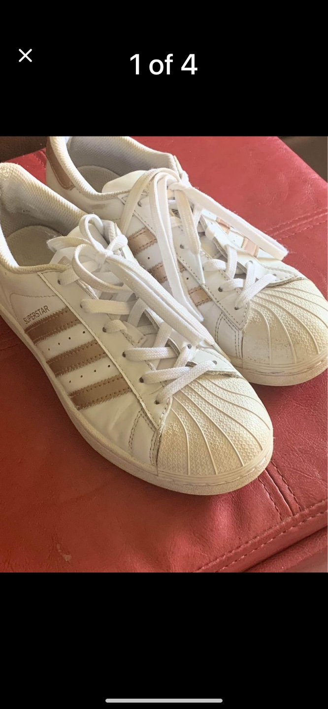 1 / 41 / 4Buy & SellAdidas Superstar SneakersAdidas Superstar Sneakers$13.50White and gold Adidas Superstar sneakers. Size 6ConditionLike newSize6BrandAdidasWHERE TO MEETCheck LocationView MapSELLERHeatherCourtice412 reviews0 chats·3 favorites·278 viewsSEND CHAT TO SELLERHi Heather! I’m interested in your listing.Hi Heather! I’m interested in your listing.Get the Karrot app to chatSign In to chat