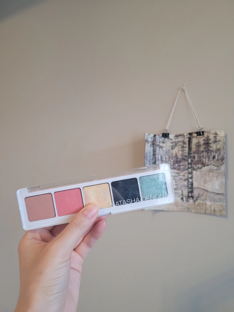 Five-pan eyeshadow palette. Includes two matte shades, three shimmer shades.